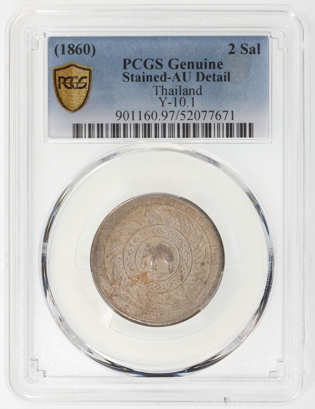 Thailand, Rama IV, [PCGS AU Detail] 2 salung (1/2 baht), 1860, (KM-Y-10.1), stained #520277671