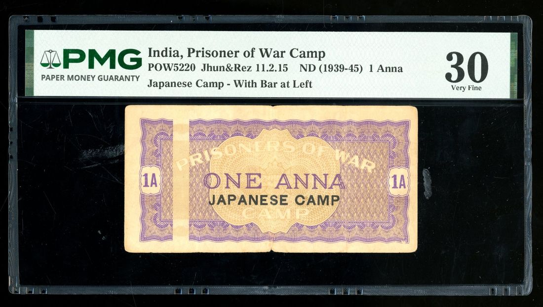 (Campbell-5220, Rezwan 11.2.15), PMG 30, split. A lesser known camp in Purana Qila (New Dehli) that housed 2700 Japanese civilians from 1941-1946. They were mainly Singapore and Malaya residents who were arrested and transferred to India where they stayed for part or entirety of the war. Interesting and very rare