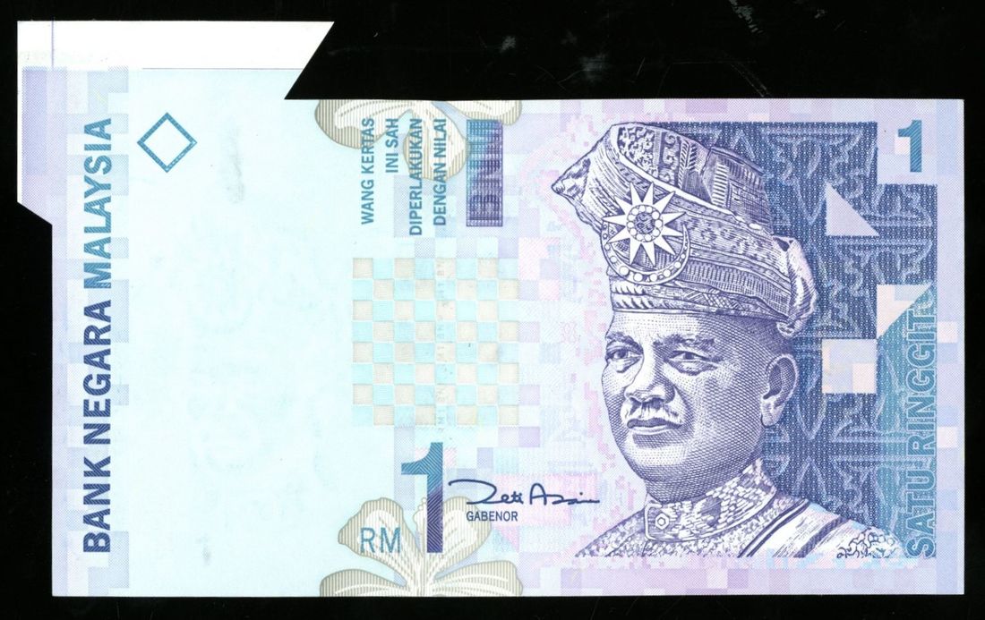 Bank Negara Malaysia, ERROR 1 ringgit, ND (1999-2010), serial number HV1210742, extra paper with print guide at top left,