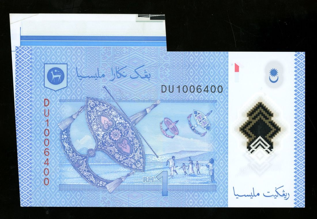 Bank Negara Malaysia, ERROR 1 ringgit, ND (2012), serial number DU1006400, (Pick 51), extremely fine. With extra paper at right showing printing guides