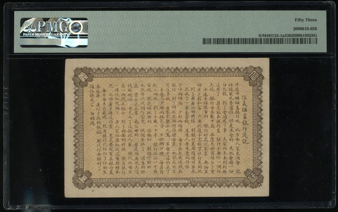 (Smith-Matravers H133-1a), PMG 53. The later issue without "Gong Shang" in bank name, less common than the earlier larger size issue