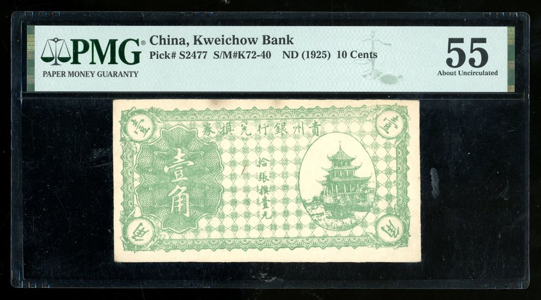 (x) Kweichow Bank, China, 10 cents, ND (1925), no serial numbers, (Pick S2477), PMG 55