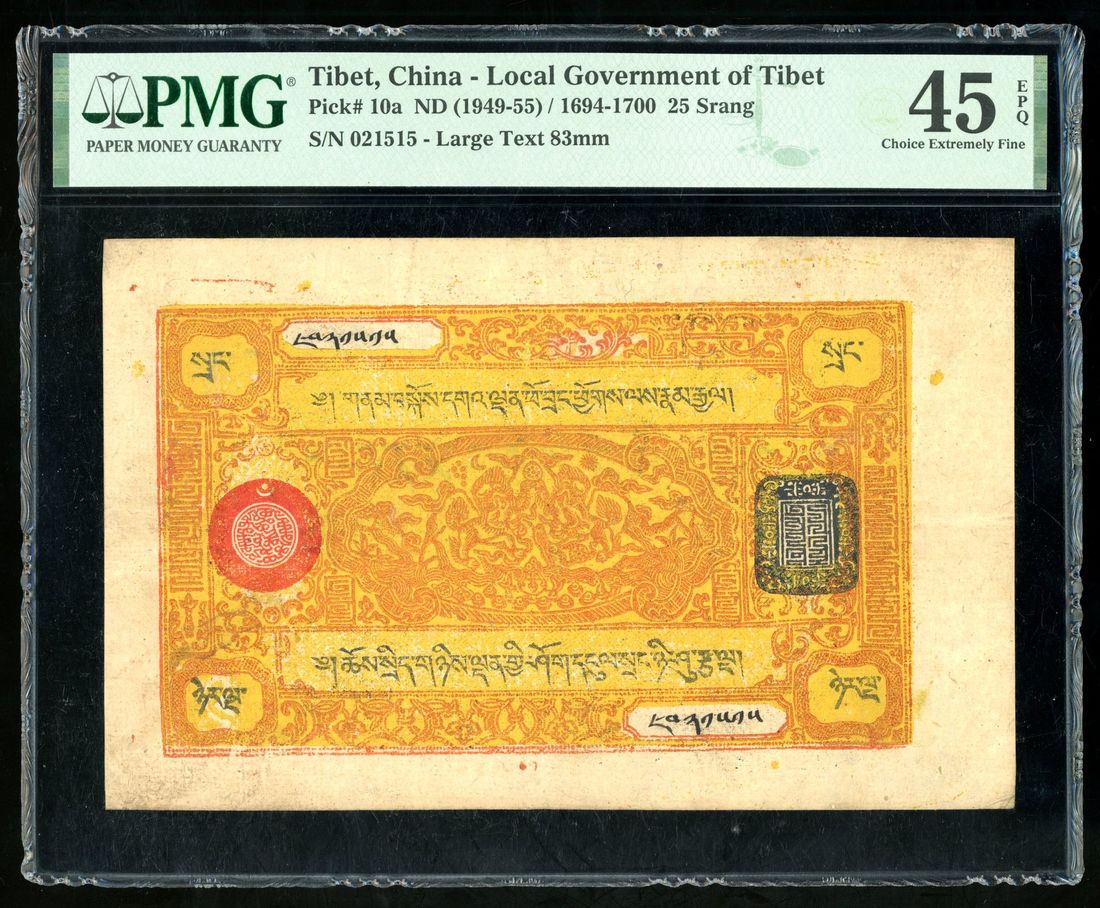 (x) Tibet, 25 srang, ND(1949-55), serial number 021515, (Pick 10a), PMG 45EPQ.