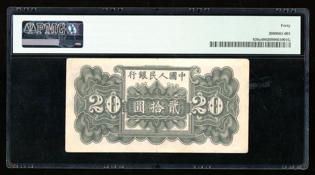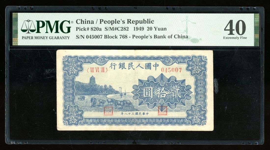 (x) People's Bank of China, 1st Series Renminbi, 1949, 20 yuan, serial number VII VI VIII 045007, "blue Liu He Pagoda",