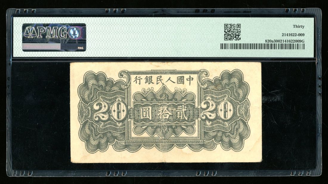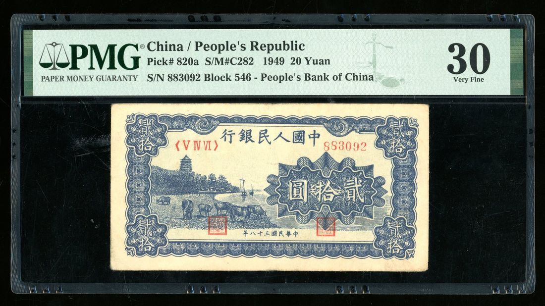 (x) People's Bank of China, 1st Series Renminbi, 1949, 20 yuan, serial number V IV VI 883092, "blue Liu He Pagoda",