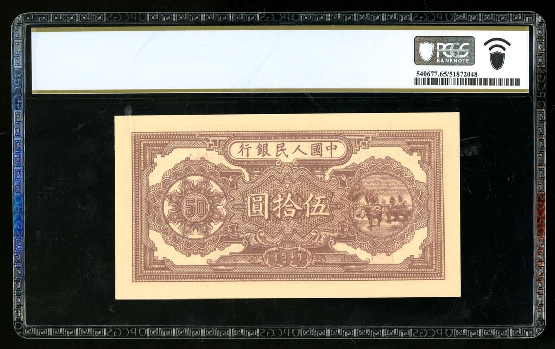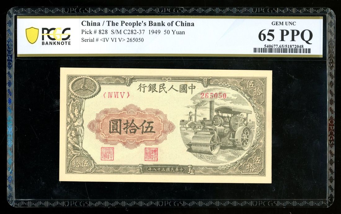 (x) People's Bank of China, 1st Series Renminbi, 1949, 50 yuan, serial number IV VI V 265050, "Steam Roller",