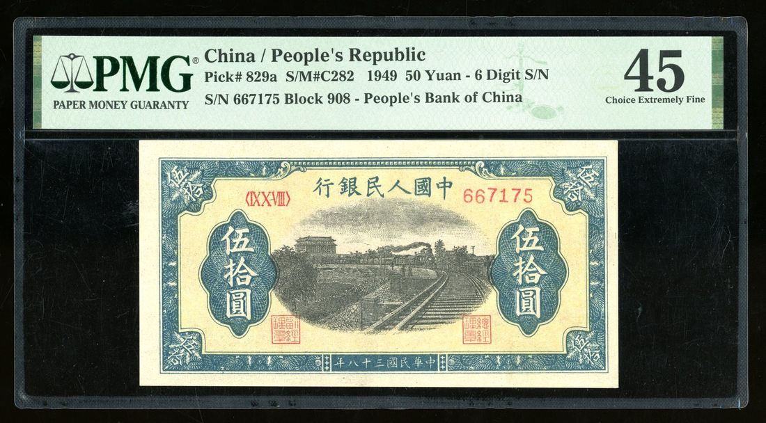 (x) People's Bank of China, 1st Series Renminbi, 1949, 50 yuan, 6 digits serial number IX X VIII 667175, "train",