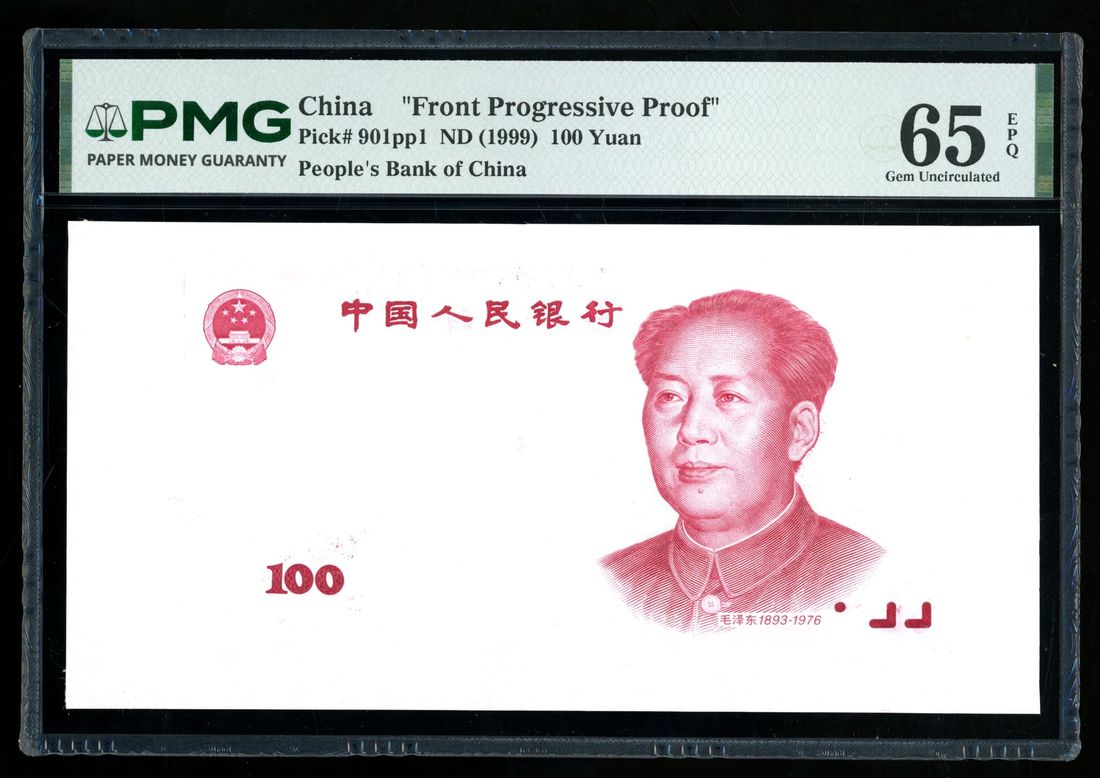 (x) People's Bank of China, 5th Series Renminbi, 1999, uniface obverse progressive proof for 100 yuan, with overprints only, missing guilloche patterns, Mao ZeDong at right,