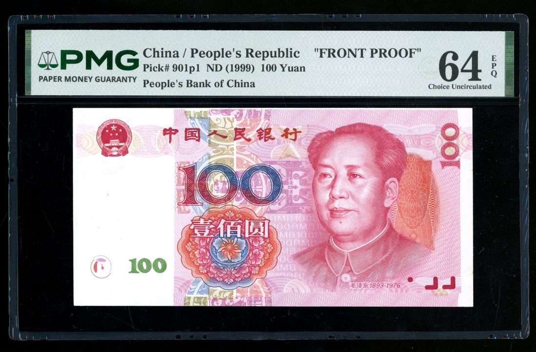 (x) People's Bank of China, 5th Series Renminbi, 1999, obverse progressive proof unissued design 100 yuan uniface, obverse design with some differences than issued note, for example,
