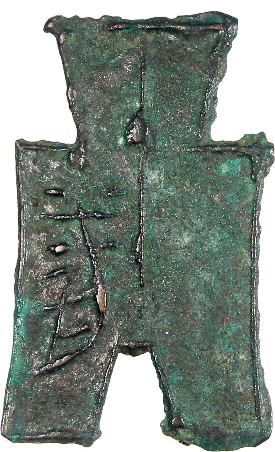 (x) China, Warring States Period, [GBCA 82] bronze square foot 'Bu' coin, circa 476-230 B.C., from the State of Han, Chinese characters 'Zhuo' (in modern day Honan Province) on obverse, 49.7x0.9mm, weighs 5.9g. Lush and even patina throughout