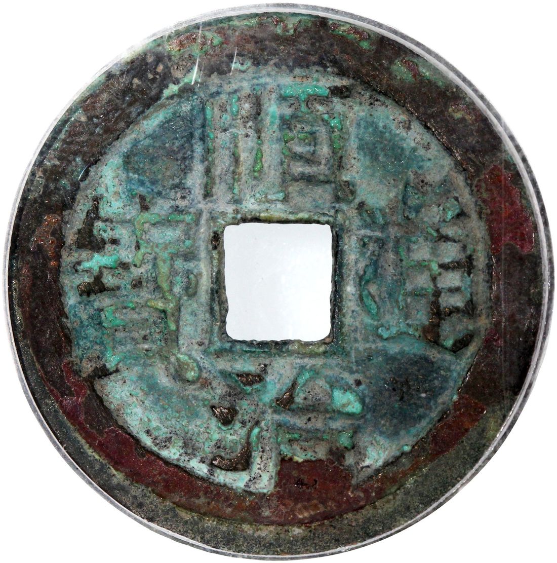 (x) China, Qing Dynasty, [GBCA 82] brass cash coin, 'Shun Zhi Tong Bao', 1653-1657, 3rd era type with Chinese characters 'Yi Li' on reverse at left quadrant, 'Lin' at right for Linqing mint, 25.8x1.5mm, weighs 4.5g