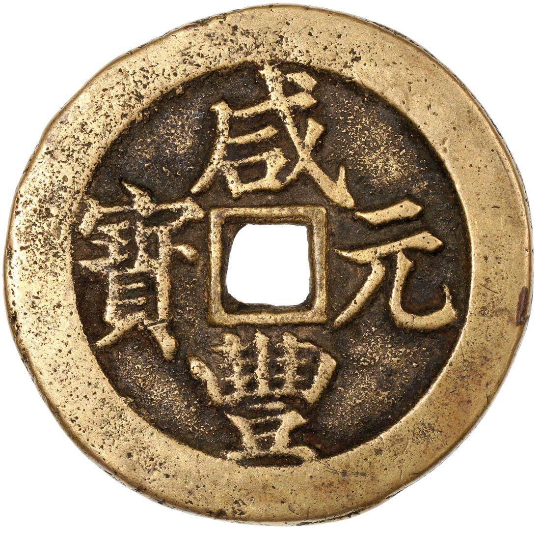 (x) China, Qing Dynasty, brass 100 cash, 'Xian Feng Yuan Bao', 1853-1861, Bao Wu (Wuchang) mint, 56.4x3.1mm, weighs 45.63g, good very fine. A relatively scarcer mint with less varieties than others as the mint was affected during the Taiping rebellion, 100 cash is also the highest denomination of this series from the mint
