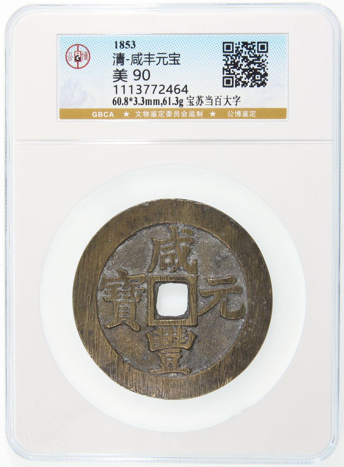 (x) China, Qing Dynasty, [GBCA 90] brass 100 cash, 'Xian Feng Yuan Bao', 1853-1861, Bao Su Mint (Suzhou), 'large character' variety, 60.8x3.3mm, weighs 61.3g,