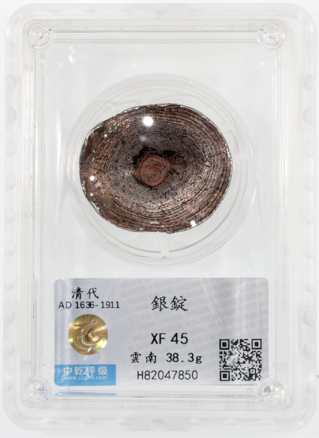 China, Qing Dynasty, Yunnan Province, [Zhong Qian XF45] oval radial silver sycee, 1644-1911, 27.5x24.5x16.8mm, weighs 38.3g