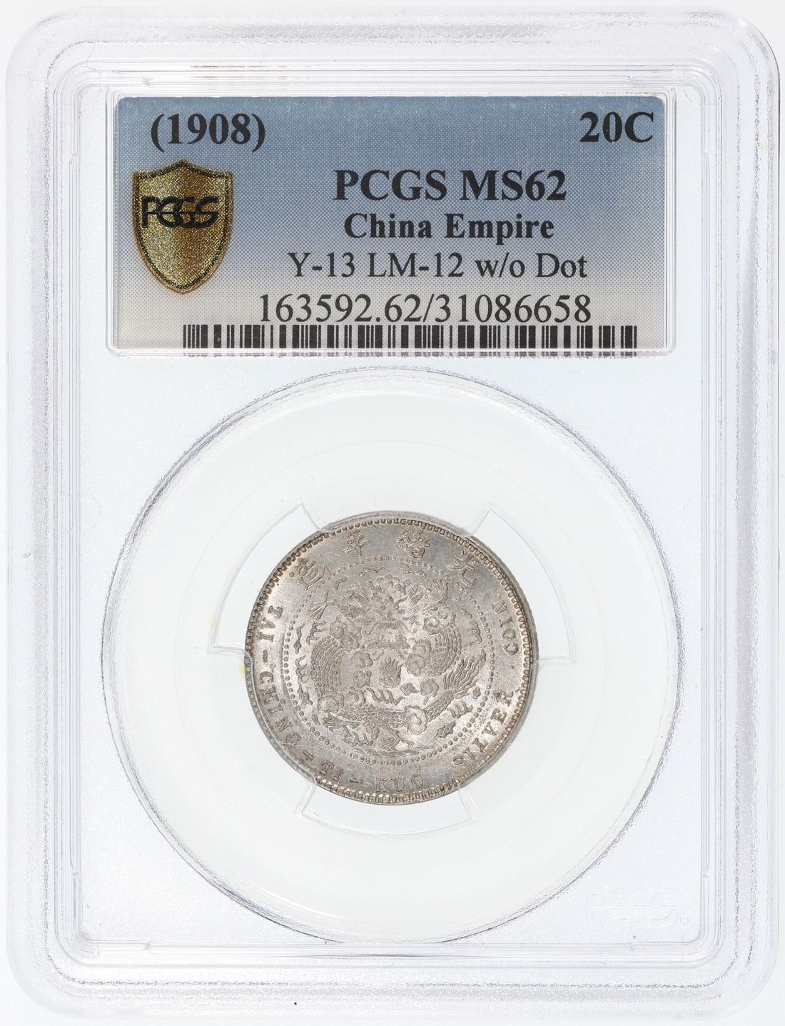 (x) China, Qing Dynasty, [PCGS MS62] silver 20 cents, Guangxu Yuan Bao, General Mint, LM-12, rare high grade. Cert.# 31086658