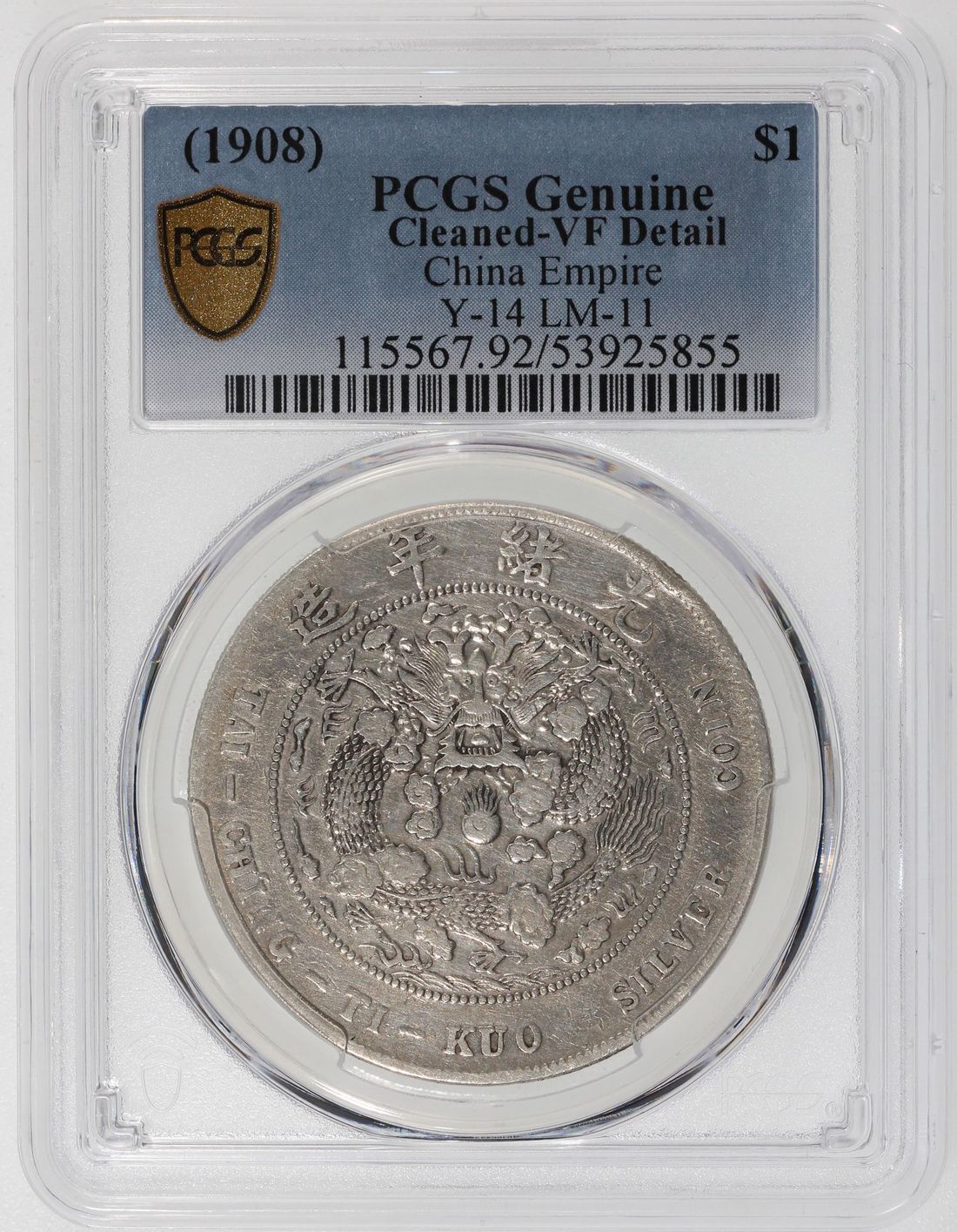 (x) China, Qing Dynasty, [PCGS VF Detail] silver dollar, ND (1908), 'Guang Xu Yuan Bao', Central Mint, (LM-11), cleaned. #53925855