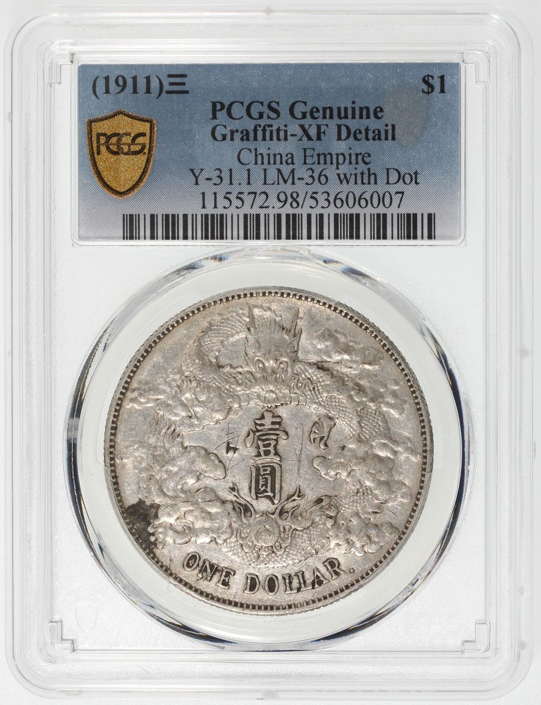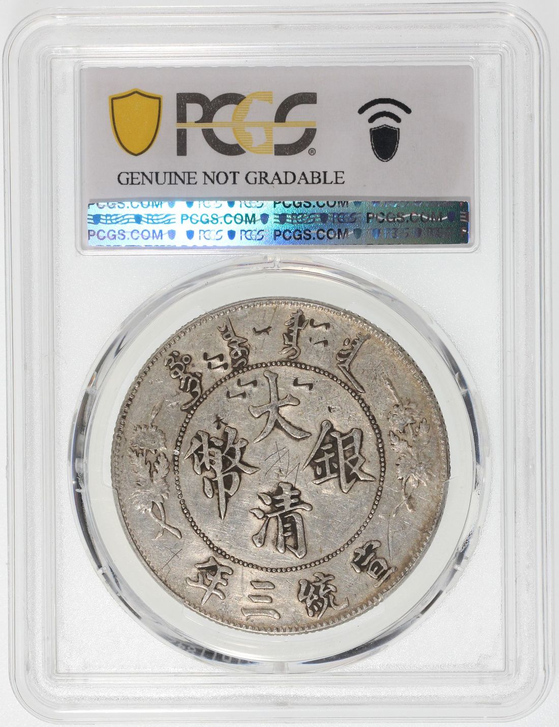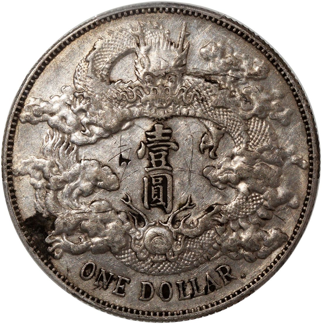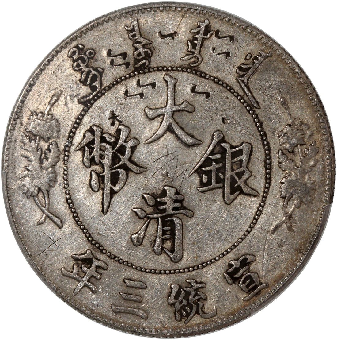 (x) China, Qing Dynasty, [PCGS XF Detail] silver dollar, 3rd Year of Xuantong (1911), Da Qing Yin Bi, variety with dot after 'Dollar' at legends on obverse,