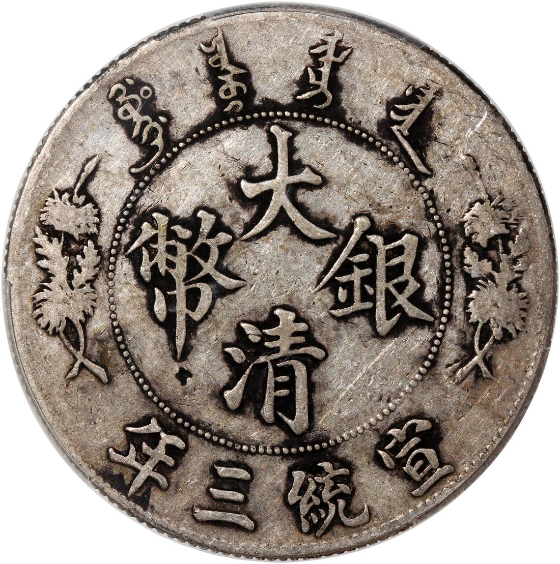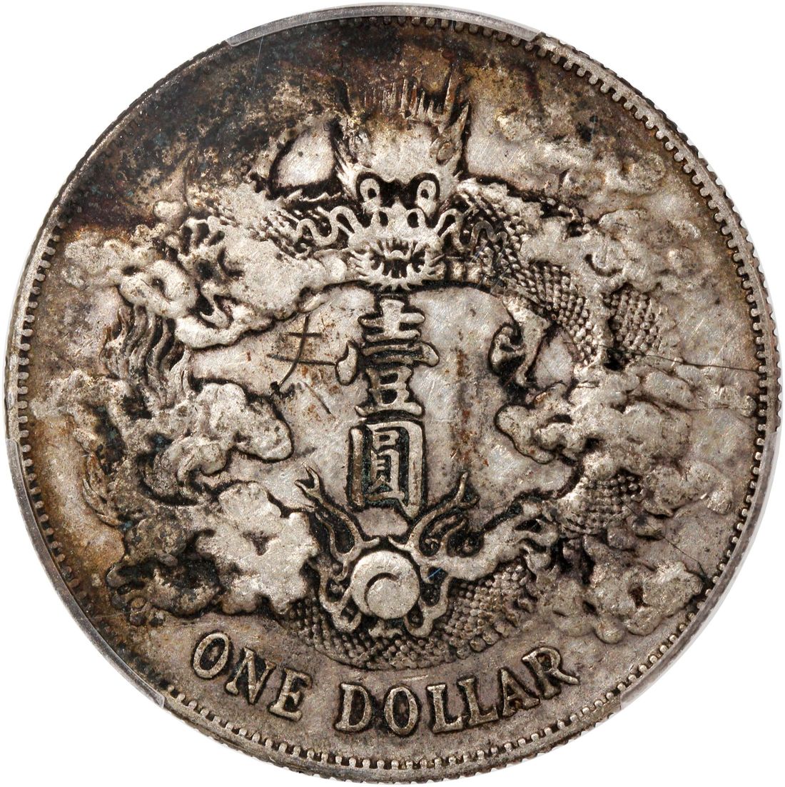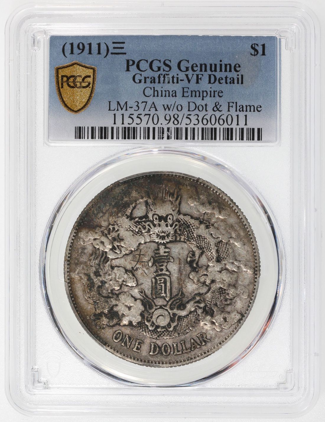 (x) China, Qing Dynasty, [PCGS VF Detail] silver dollar, 3rd Year of Xuantong (1911), 'Da Qing Yin Bi', without dot and no extra flame variety, (LM-37A), Graffiti, Cert.# 53606011