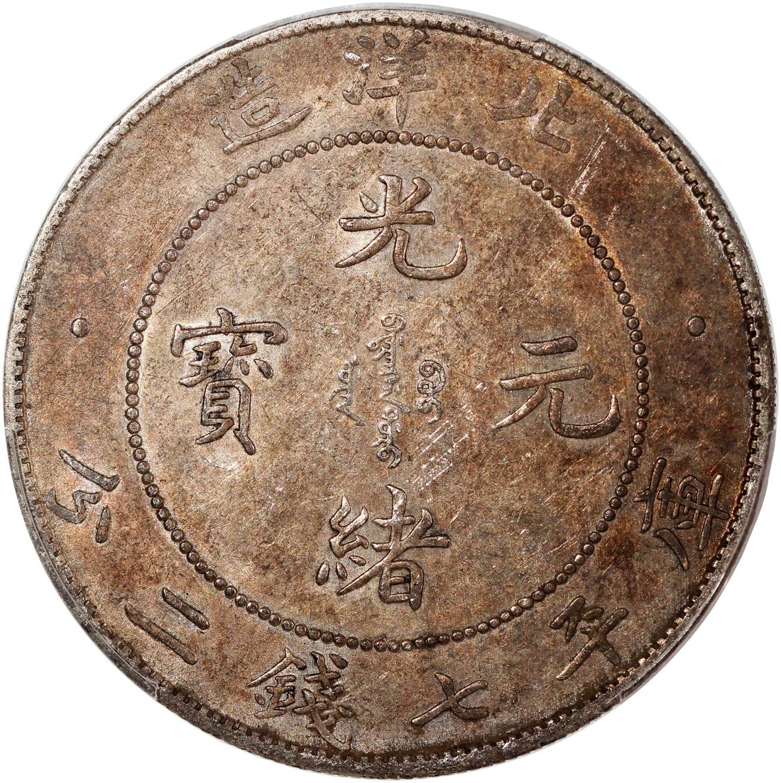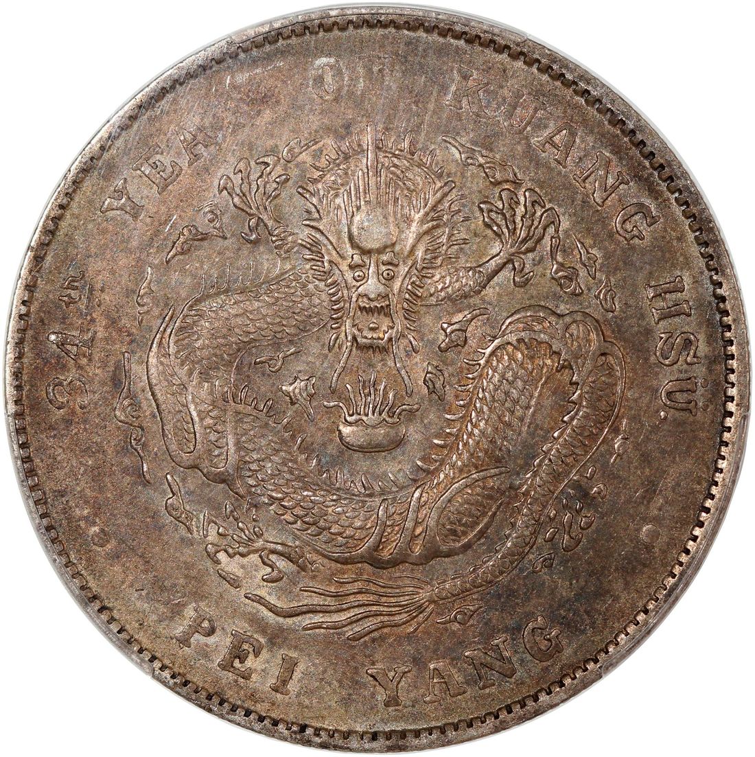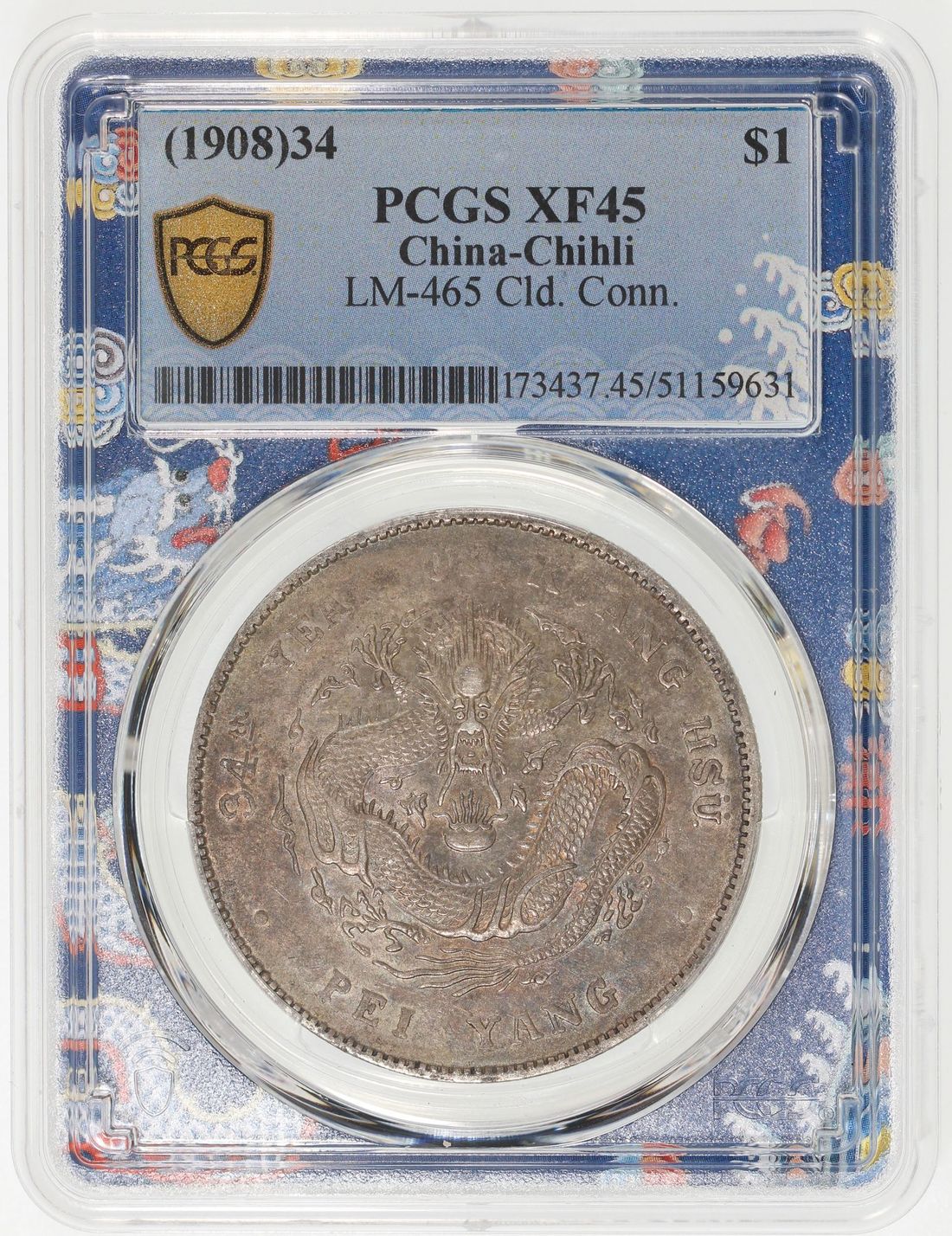 (x) China, Qing Dynasty, Chihli Province, [PCGS XF45] silver dollar, 34th Year of GuangXu (1908), 'Guang Xu Yuan Bao', cloud connected variant, (LM-465, KM-Y-73.2), Cert. #51159631, muted peach tones throughout with a few dash of blue on obverse