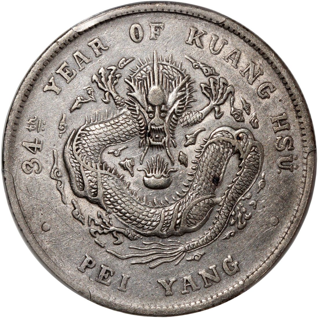 (x) China, Qing Dynasty, Chihli Province, [PCGS XF Detail] silver dollar, 34th Year of GuangXu (1908), "GuangXu Yuan Bao", (LM-465), streak removed. #53925862