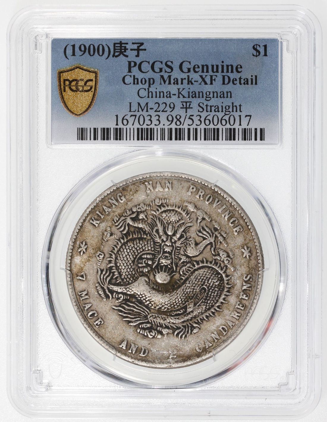 (x) China, Qing Dynasty, Kiangnan Province, [PCGS XF Details] silver dollar, Gengzi Year (1900), 'Guang Xu Yuan Bao', straight 'ping' variety, (LM-229),