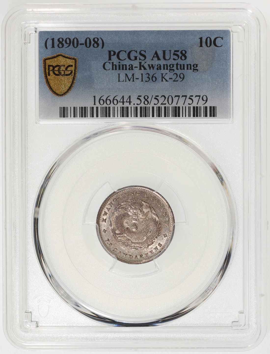 (x) China, Qing Dynasty, Kwangtung Province, [PCGS AU58] 10 cents, 1890-1908, (LM-136), #52077579