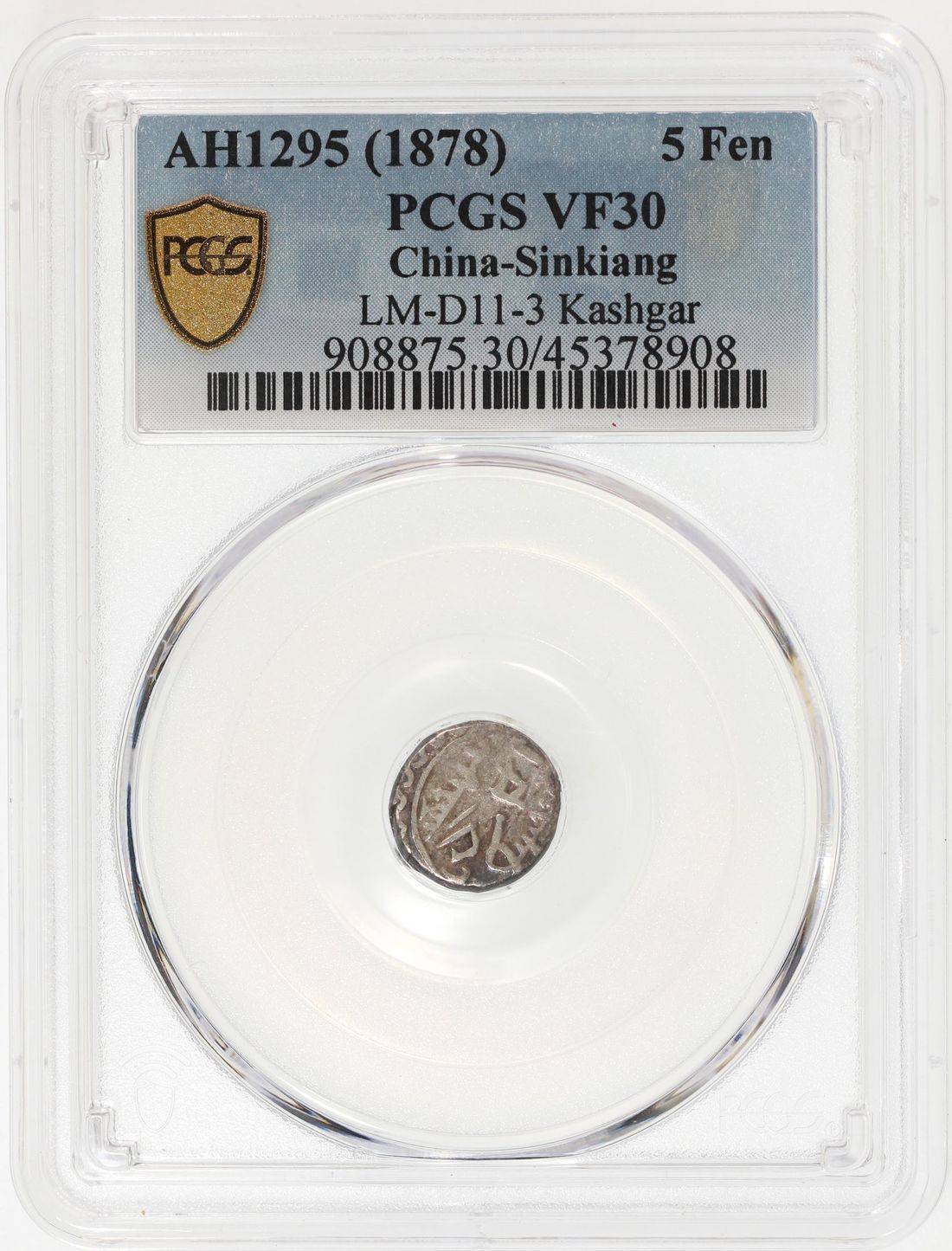 (x) China, Qing Dynasty, Sinkiang Province, [PCGS VF30] 5 fen, AH1295 (1878), Kashgar Mint, #45378909