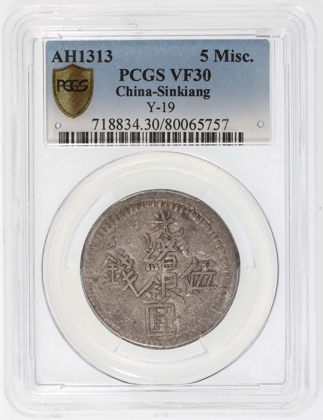 China, Qing Dynasty, Sinkiang Province, [PCGS VF30] silver 5 mace, AH1313 (1895), 'Guang Xu Yin Yuan', Kashgar mint, extra stroke on the Chinese character 'Wu' on obverse (KM-Y-19), Cert. #80065757. Interesting sub-type