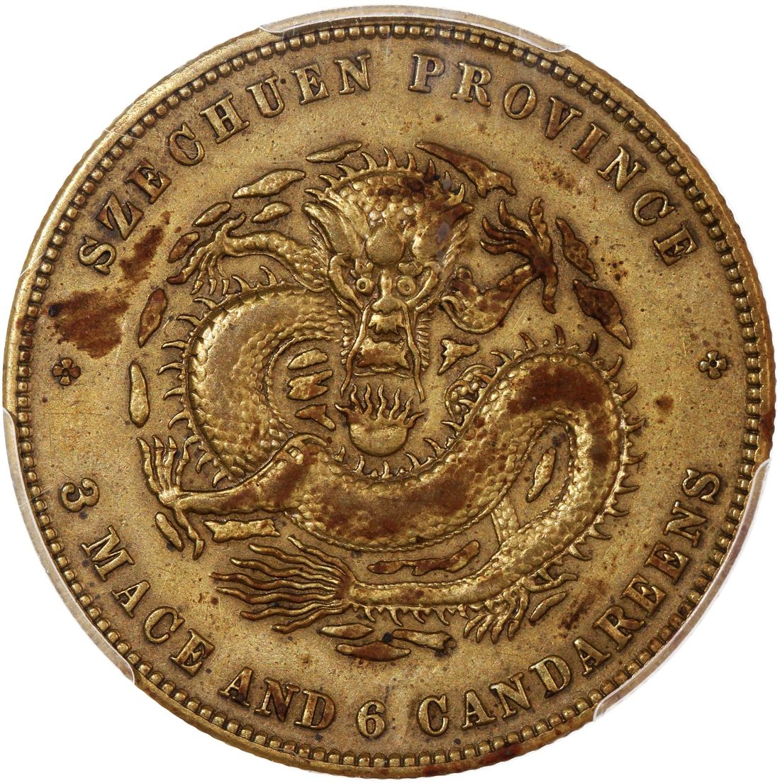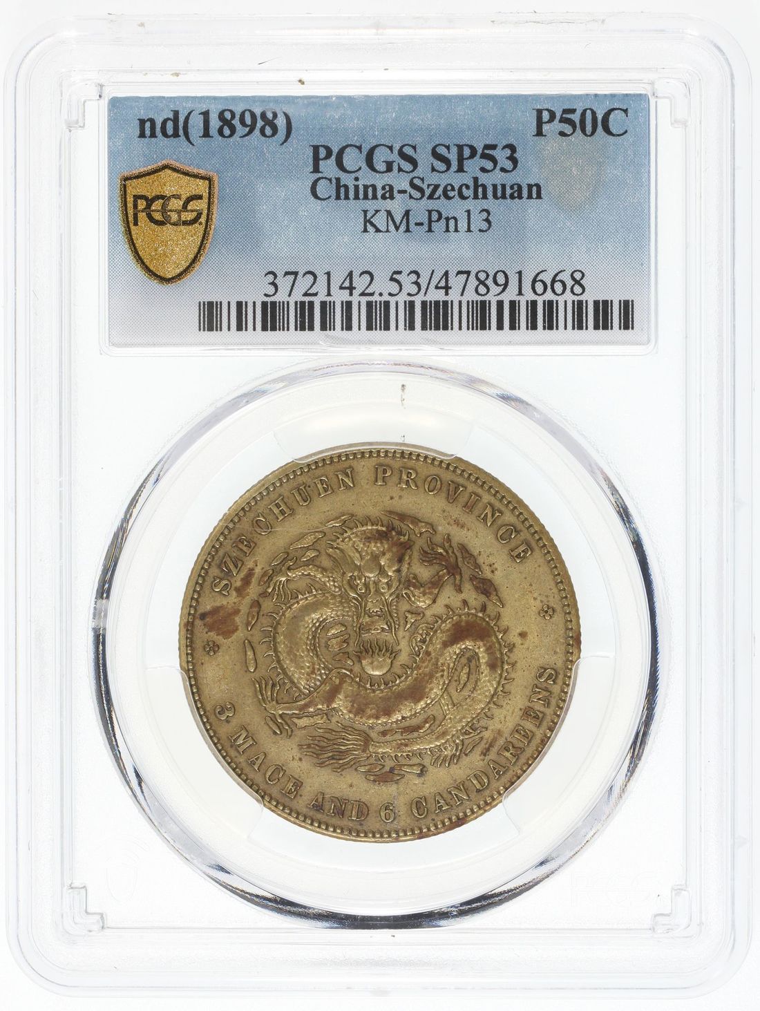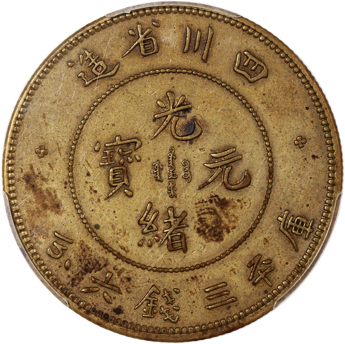 (x) China, Qing Dynasty, Szechuan Province, brass pattern 50 cents, ND (1898), struck at the Ferracute Mint in New Jersey USA by then chief engraver of US mint, Charles Barber.