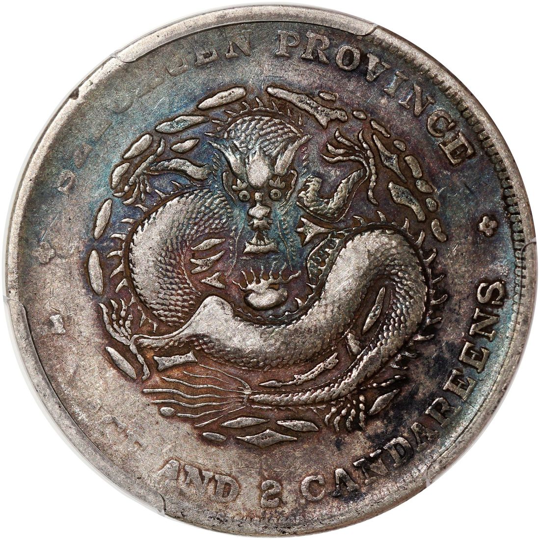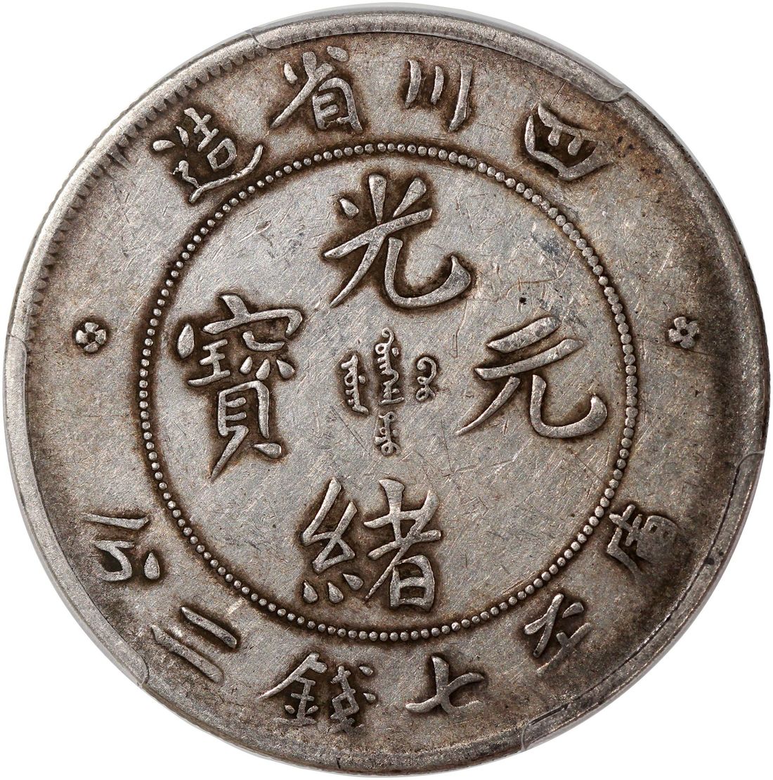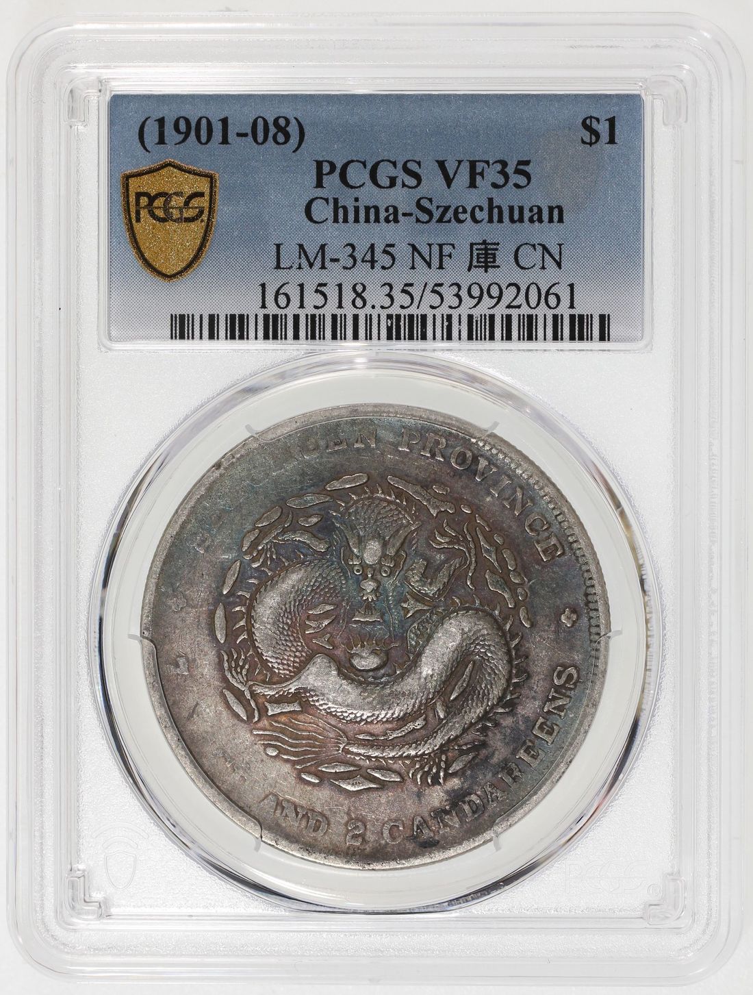 (x) China, Qing Dynasty, Szechuan Province, [PCGS VF35] silver dollar, ND (1901-08), 'Guang Xu Yuan Bao', narrow faced dragon on obverse, Chinese character 'Ku' connected type, (LM-345, KM-Y-238), Cert. #53992061, striking cerulean patina on obverse