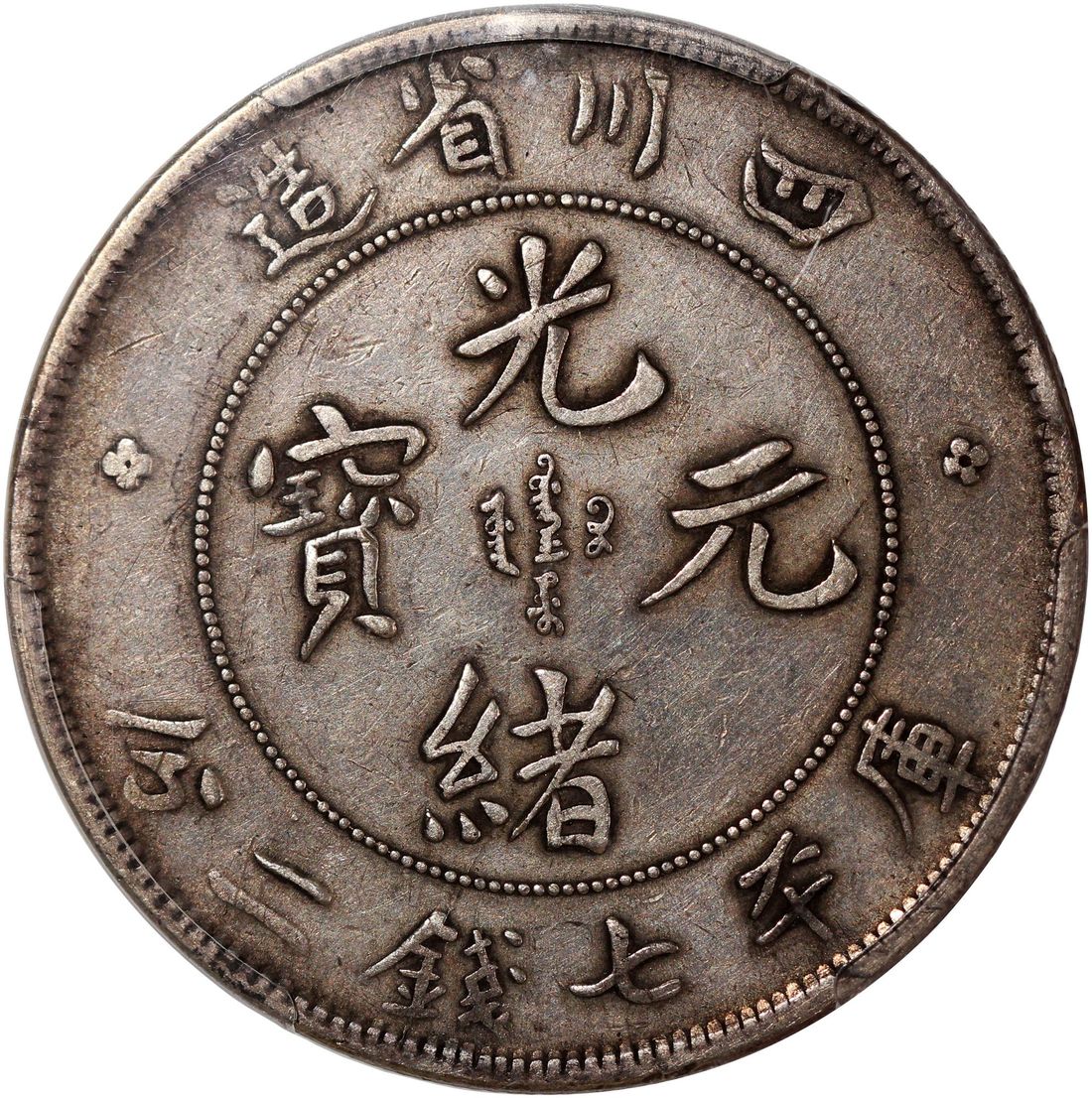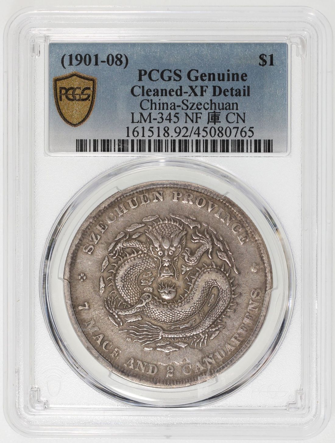 (x) China, Qing Dynasty, Szechuan Province, [PCGS XF Detail] silver dollar, ND (1901-08), 'Guang Xu Yuan Bao', narrow faced dragon on obverse, Chinese character 'Ku' connected type, (LM-345, KM-Y-238), Cleaned, Cert. #45080765