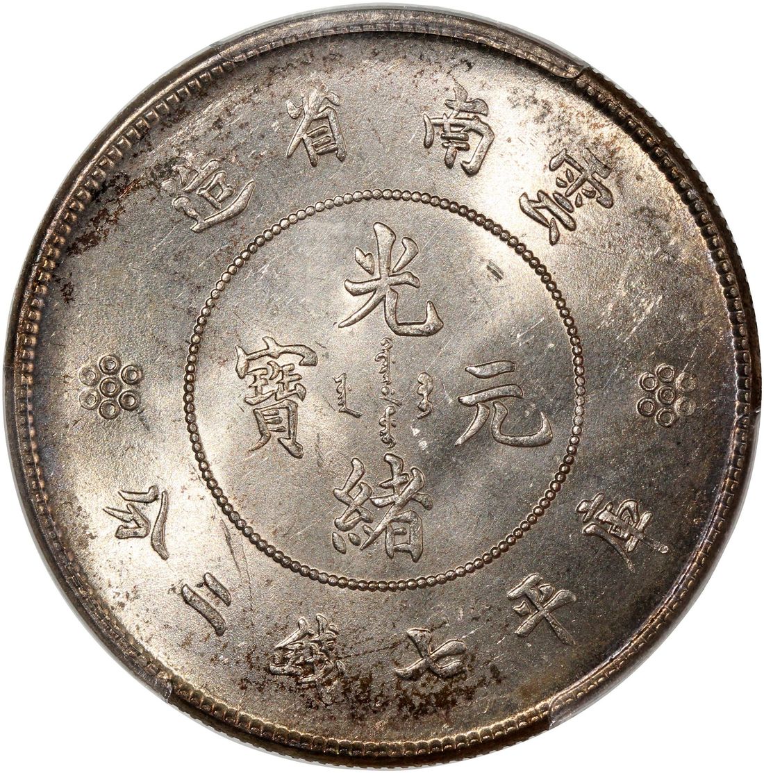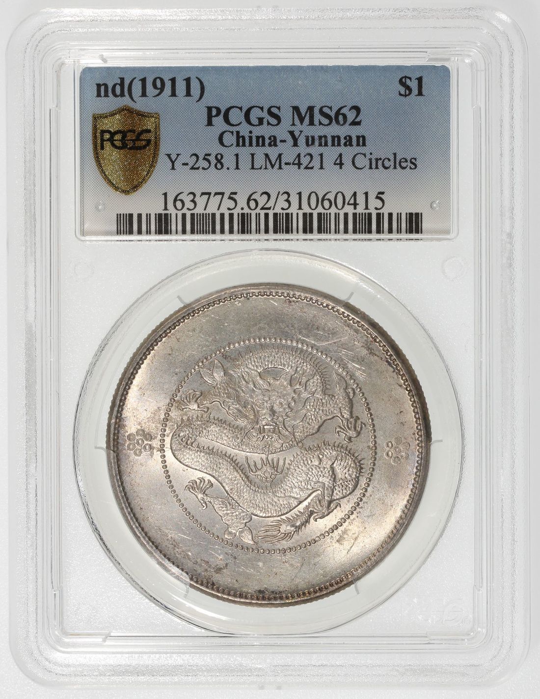 (x) China, Qing Dynasty, Yunnan Province, [PCGS MS62] silver dollar, ND (1911), Kunming Mint, "with four circles under fiery pearl" type,