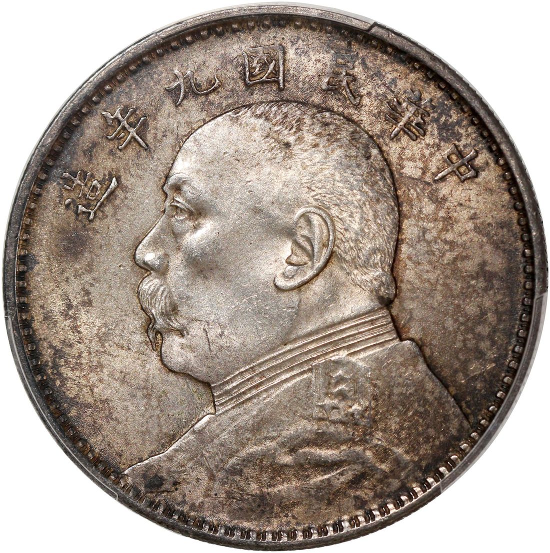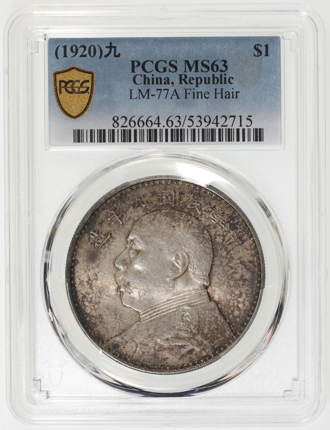 (x) China, Republic, [PCGS MS63] silver dollar, Year 9 (1920), fine hair variant, 'Yuan Shih Kai', (LM-77A), Cert. #53942715, mottled toning in charcoal grey