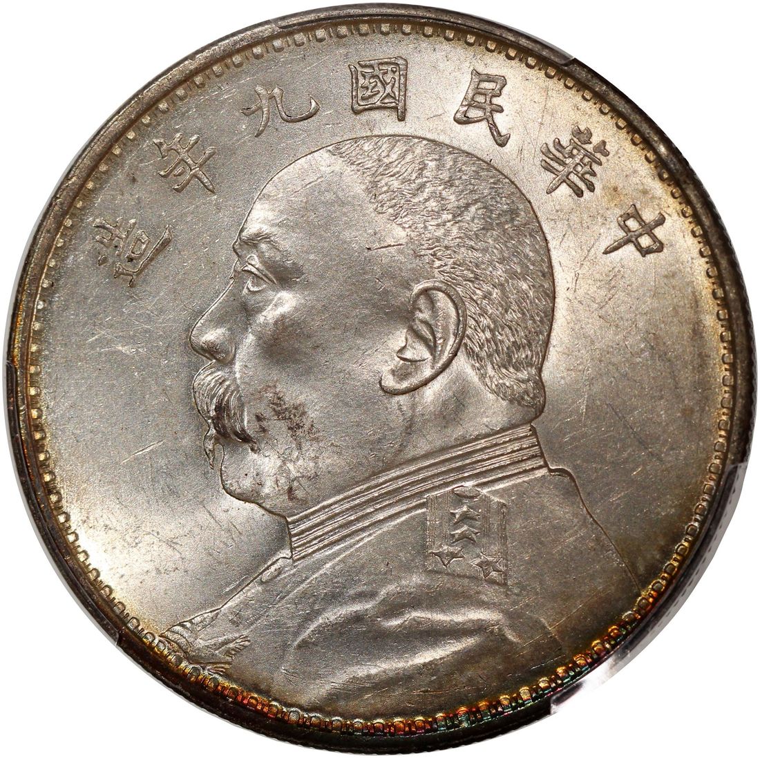 (x) China, Republic, [PCGS MS62] silver dollar, Year 9 (1920), fine hair variety, 'Yuan Shih Kai', (LM-77A), Cert. #61278287. Ample lustre with hints of rainbow toning on this popular variety