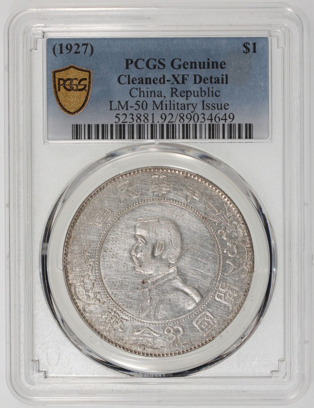 (x) China, Republic, [PCGS XF Detail] silver dollar, ND (1927), 'Memento', Military Issue, (LM-50), Cleaned, Cert. #89034649