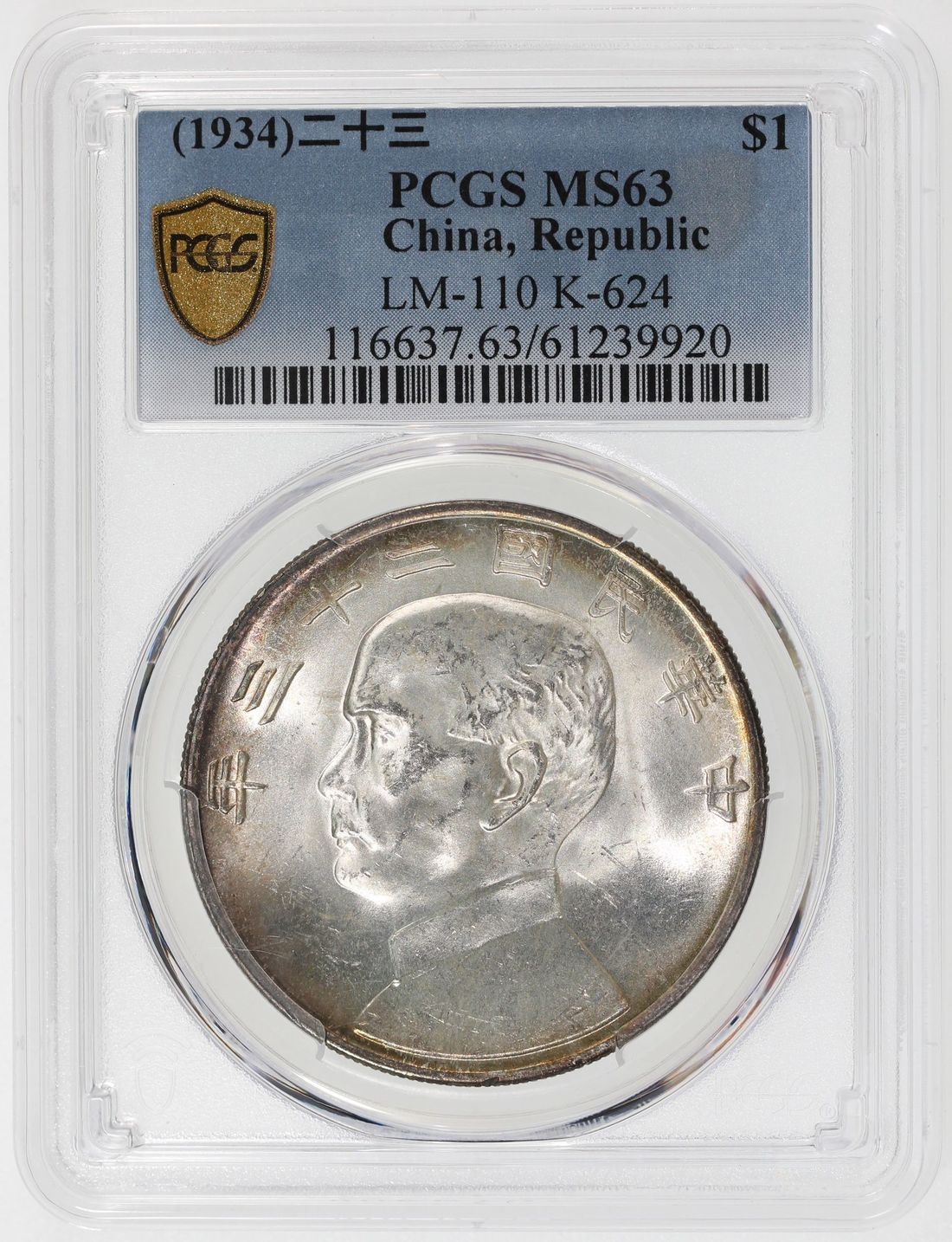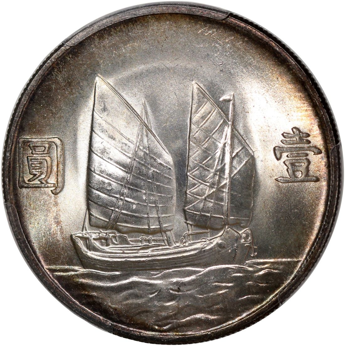 (x) China, Republic, [PCGS MS63] silver dollar, Year 23 (1934), 'Junk', (LM-110, K-624), Cert. #52013295, rainbow toning present near the rims on both sides