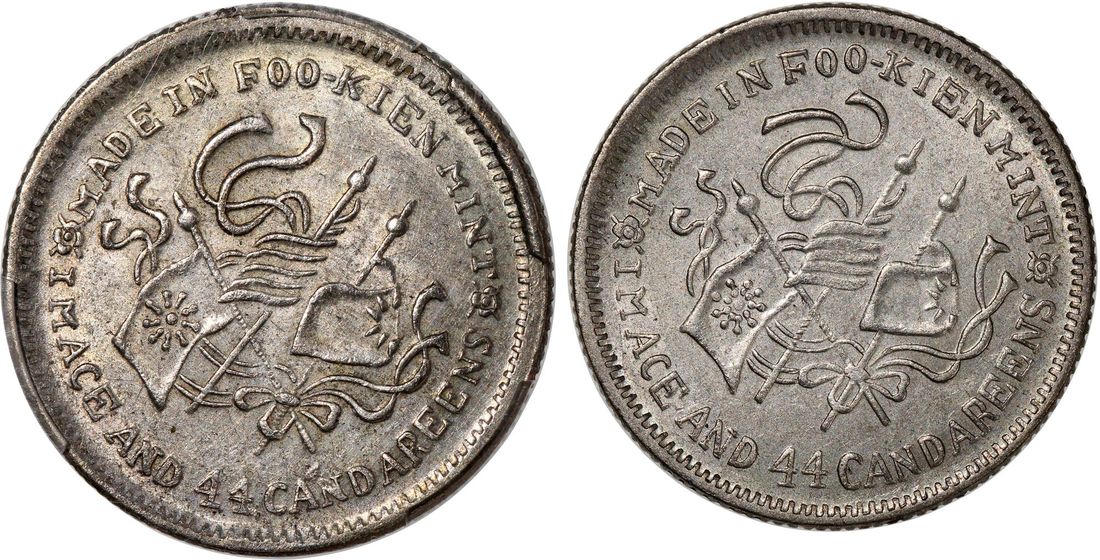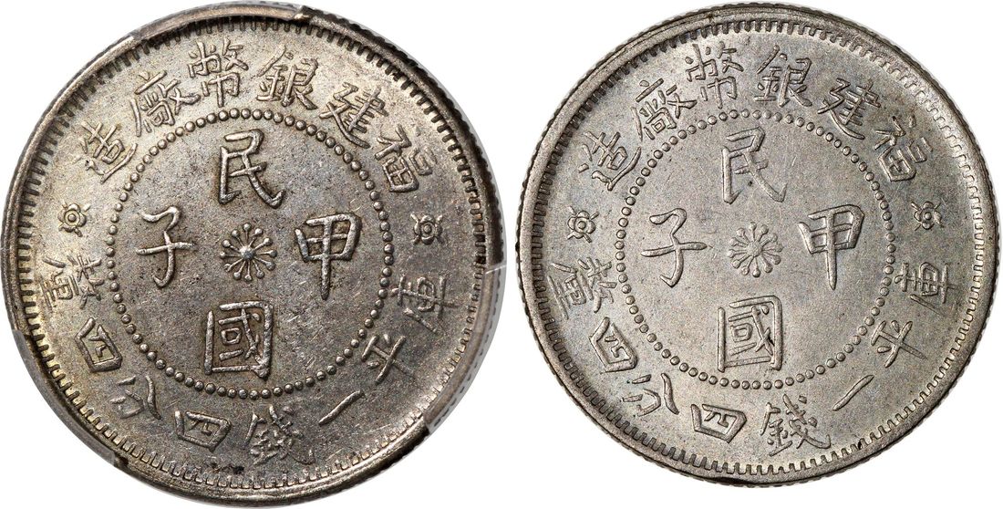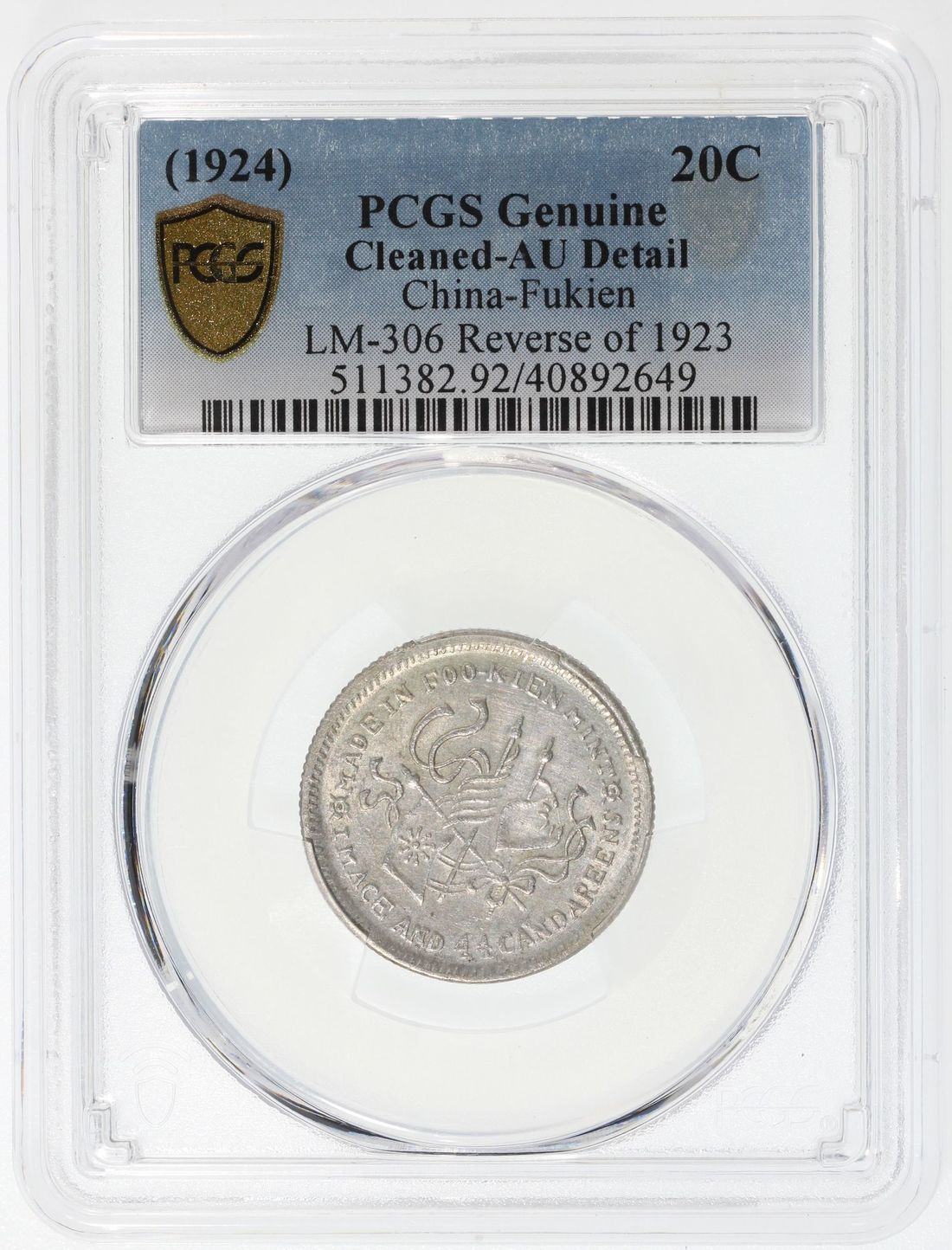(x) China, Republic, Fukien Province, a pair of 20 cents, 1924, one with reverse of the 1923 type, (LM-306), PCGS AU Detail (cleaned) #40892649 and about uncirculated respectively. Interesting (2)