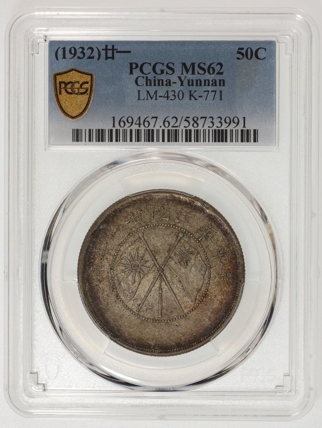 (x) China, Republic, Yunnan Province, [PCGS MS62] silver 50 cents, Year 21 (1932), Crossed flags on obverse, (LM-430, KM-Y-492), Cert. #58733991