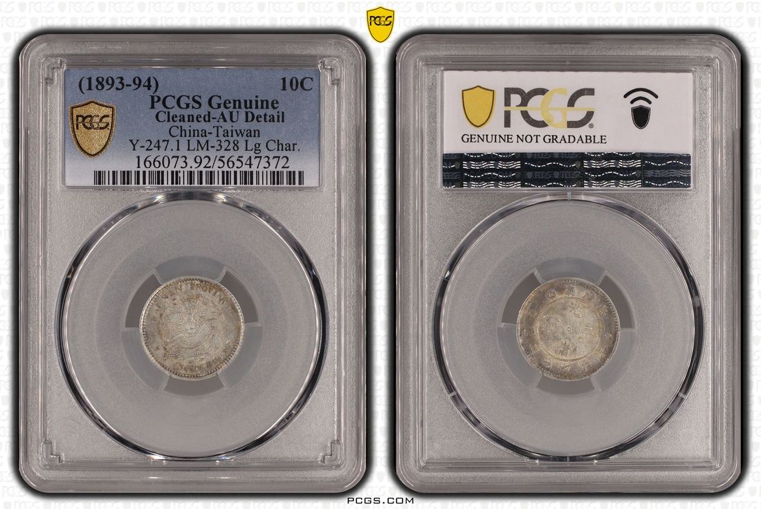 (x) China, Qing Dynasty, Taiwan, [PCGS AU Detail] silver 10 cents, ND (1893-94), 'Guang Xu Yuan Bao', large character variety, (KM-Y-247.1, LM-328), Cleaned, Cert. #56547372, low mintage minor