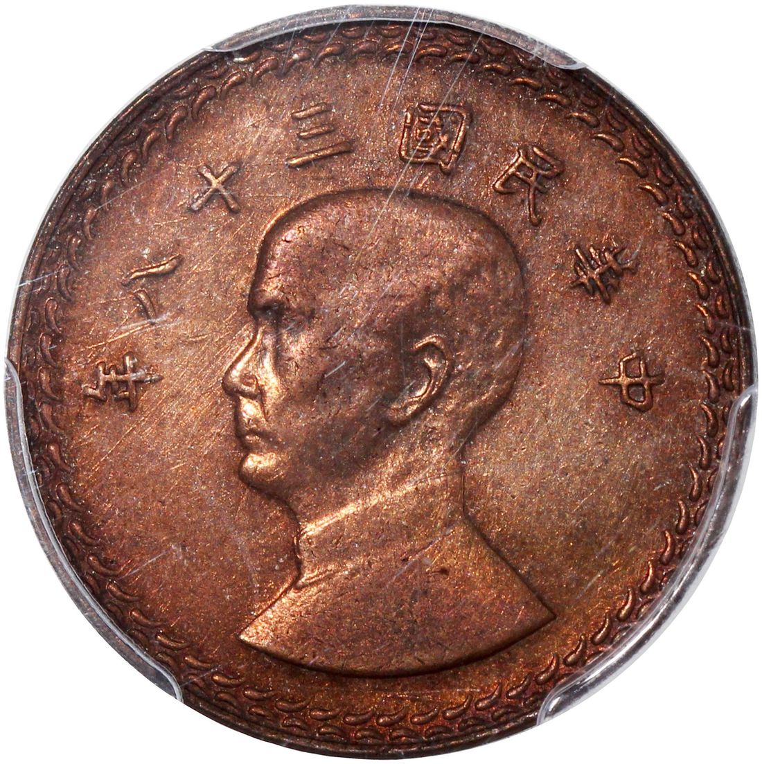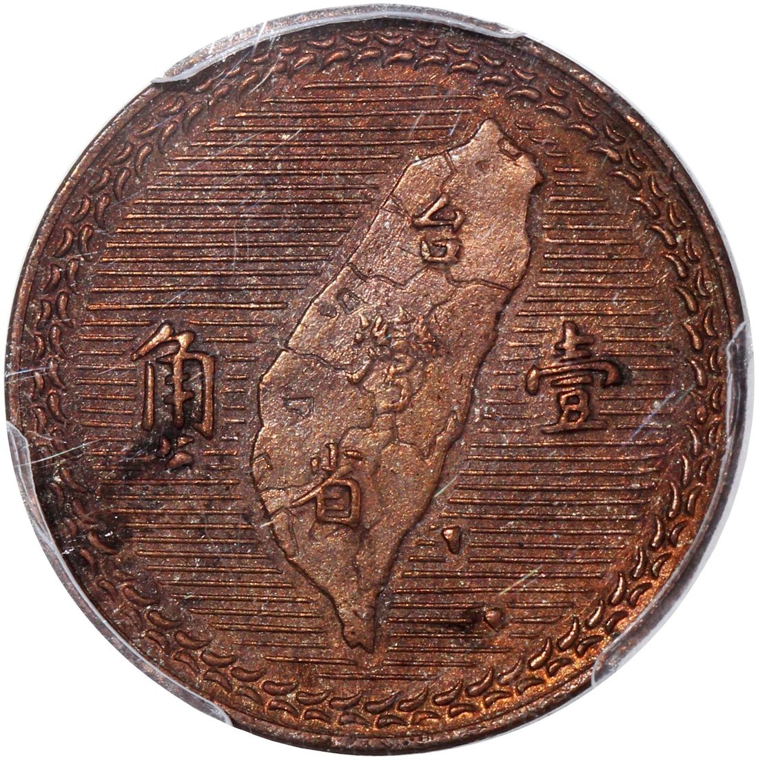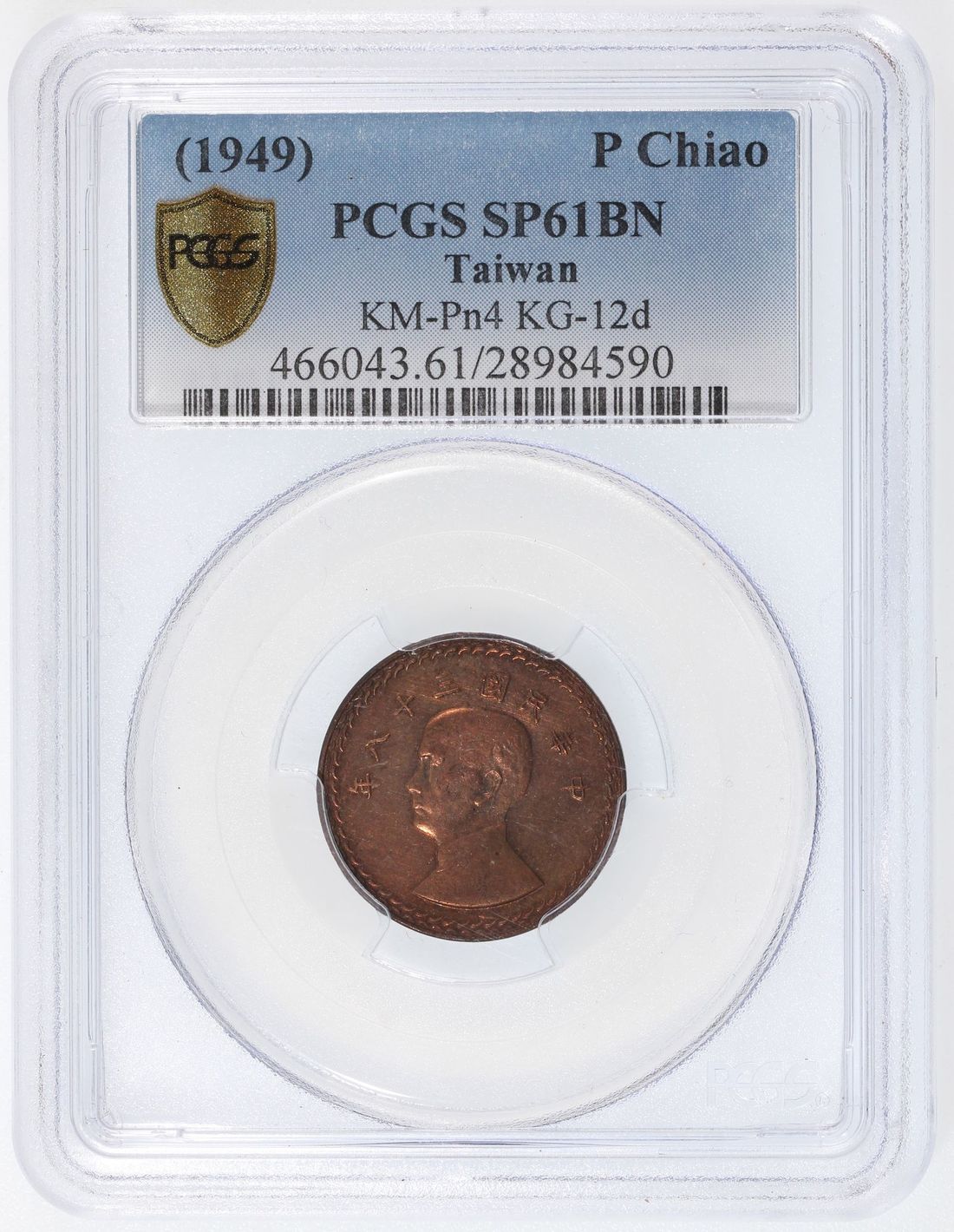 (x) China, Taiwan, [PCGS SP61BN] copper pattern 1 chiao, Year 38 (1949), portrait of Sun Yat Sen on obverse, map of Taiwan on reverse, (KM-Pn4), #28984590