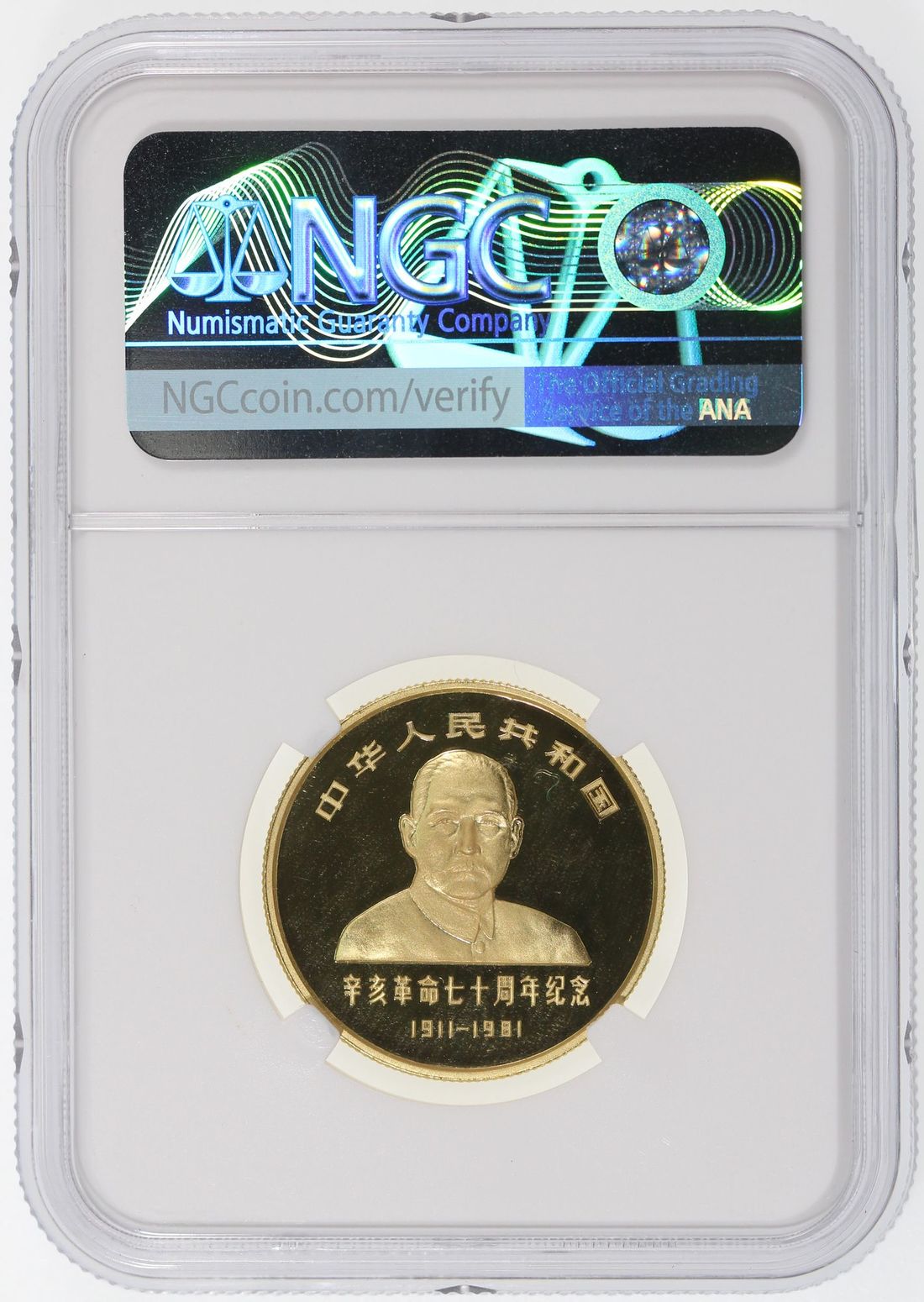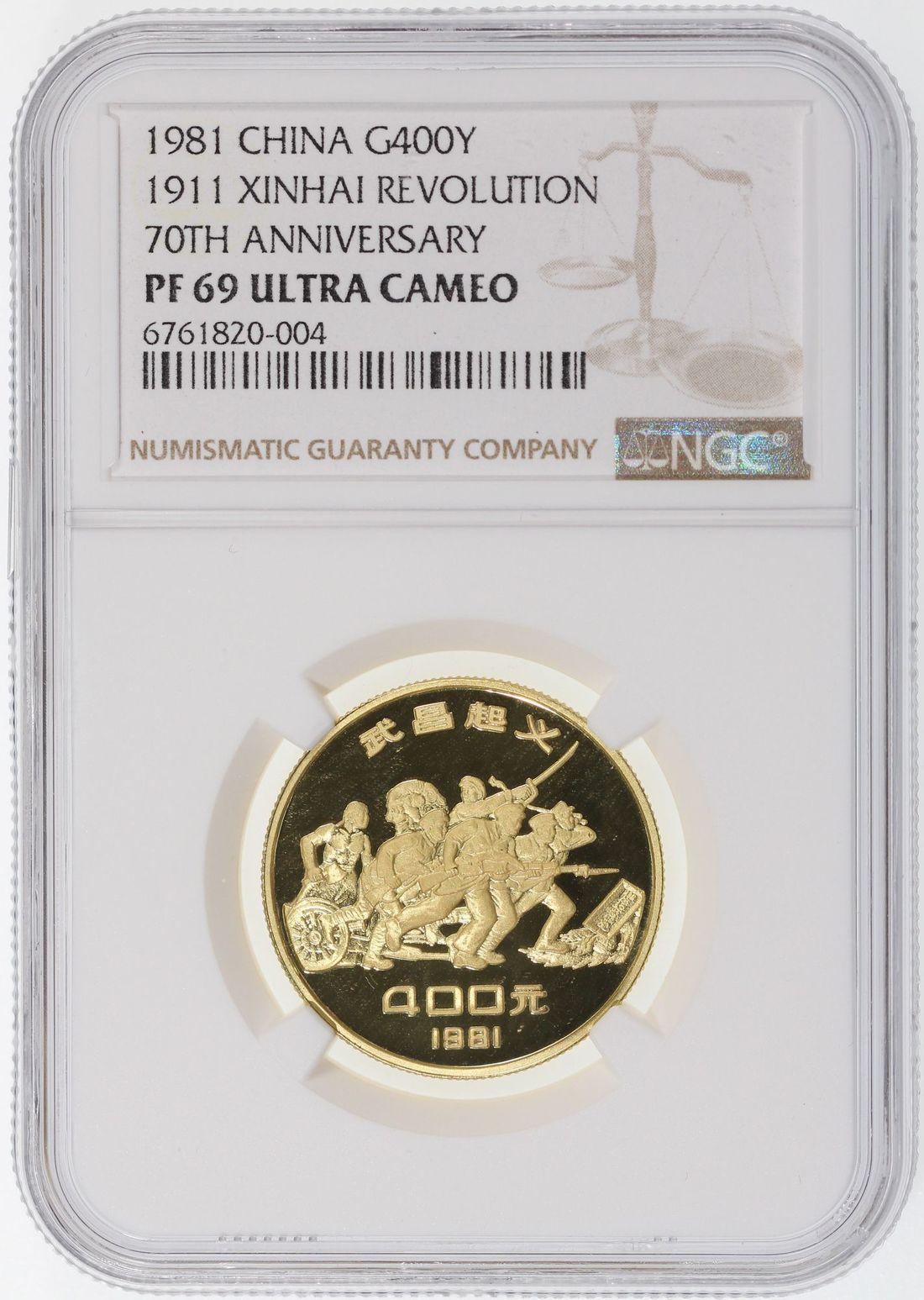 (x) People's Republic of China, [NGC PF 69UC] gold proof 400 yuan, 1981, "Xinhai Revolution 70th Anniversary - 1911" .916 fineness, 1/2oz , mintage 1338 only, Cert. no.6761820-004. Scarce