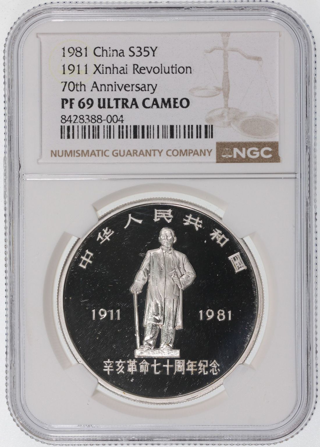 (x) People's Republic of China, [NGC PF69 UC] silver proof 35 yuan, 1981, "Xinhai Revolution 70th Anniversary - 1911" .925 fineness, mintage 3885,