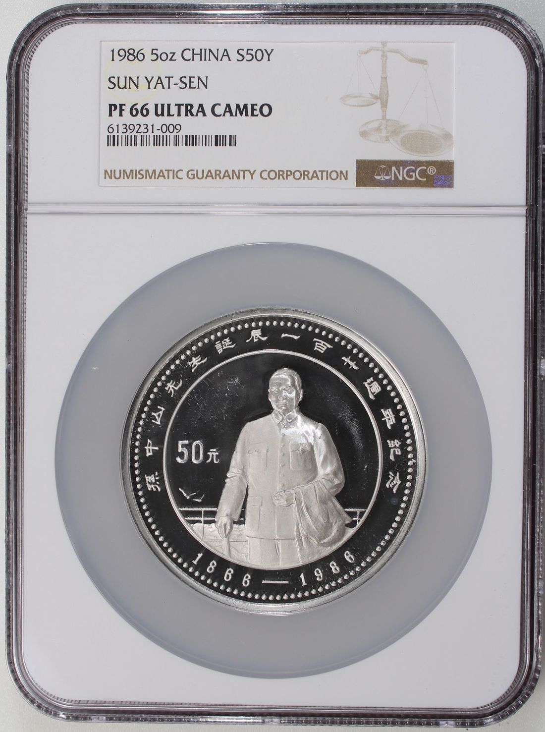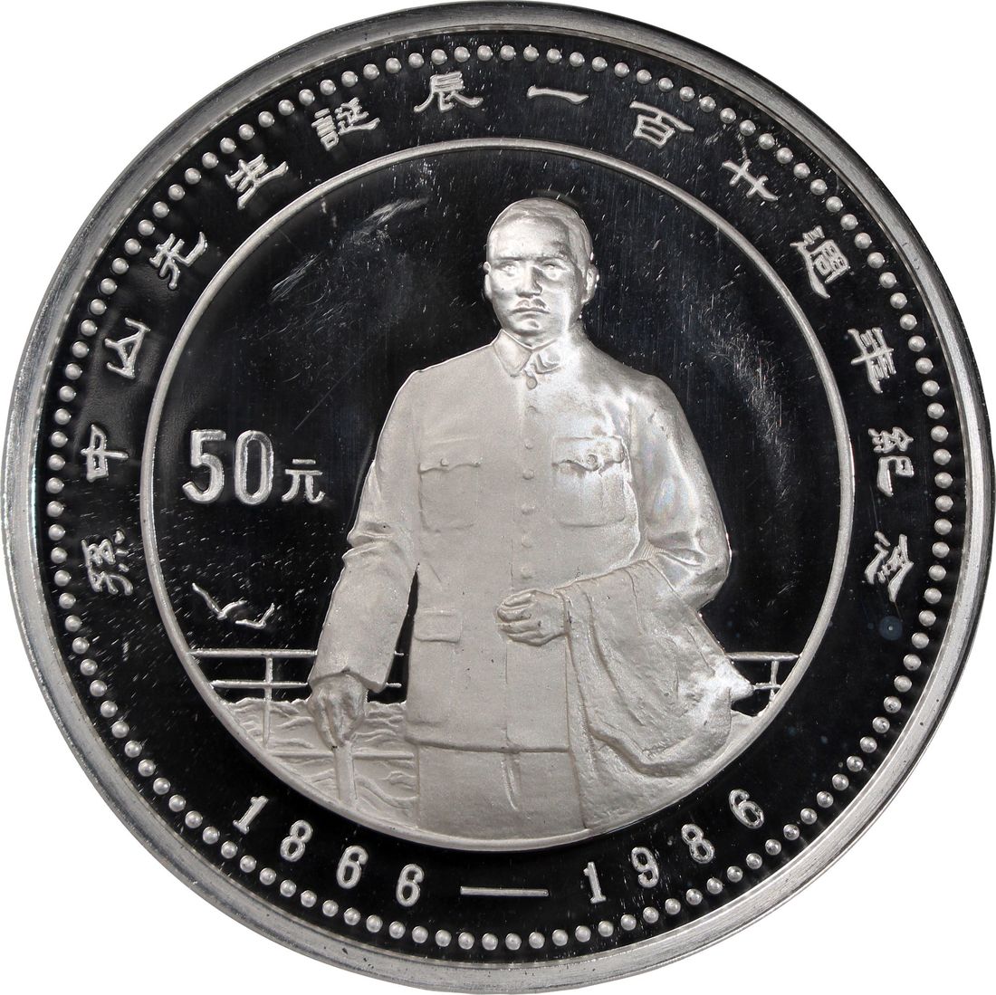 People's Republic of China, [NGC PF66UC] silver proof 50 Yuan, 1986, "120th Anniversary of the Birth of Sun Yat Sen", ASW 5oz, mintage 3000,