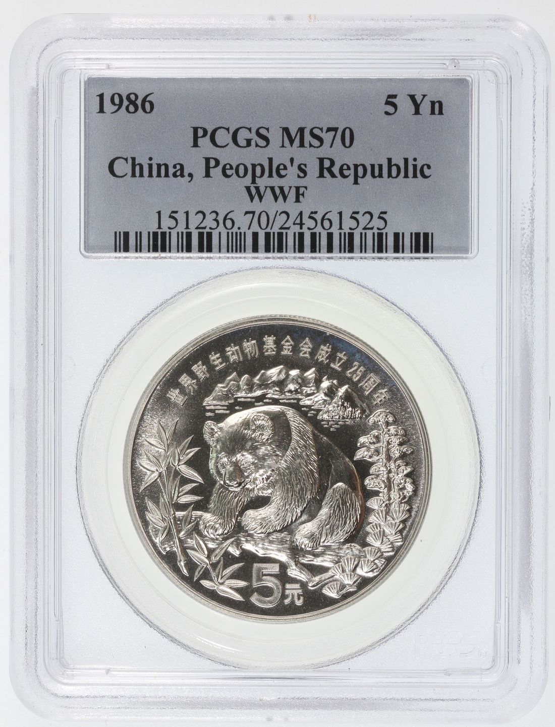(x) People's Republic of China, [PCGS MS70] silver 5 yuan, 1986, Panda, "WWF 25th Anniversary", .900 fineness, weigh 22g, TOP POP. Cert.# 24561525