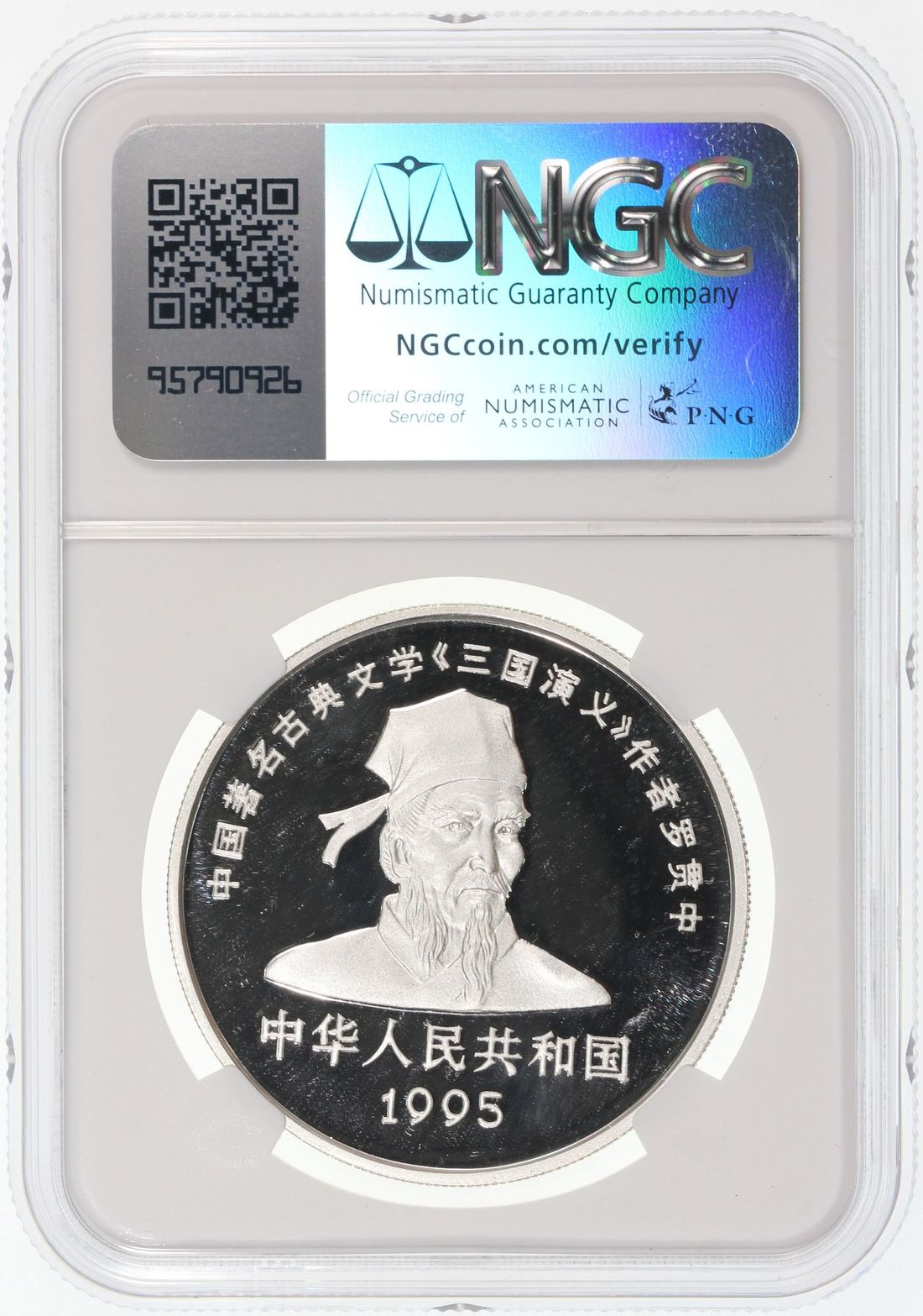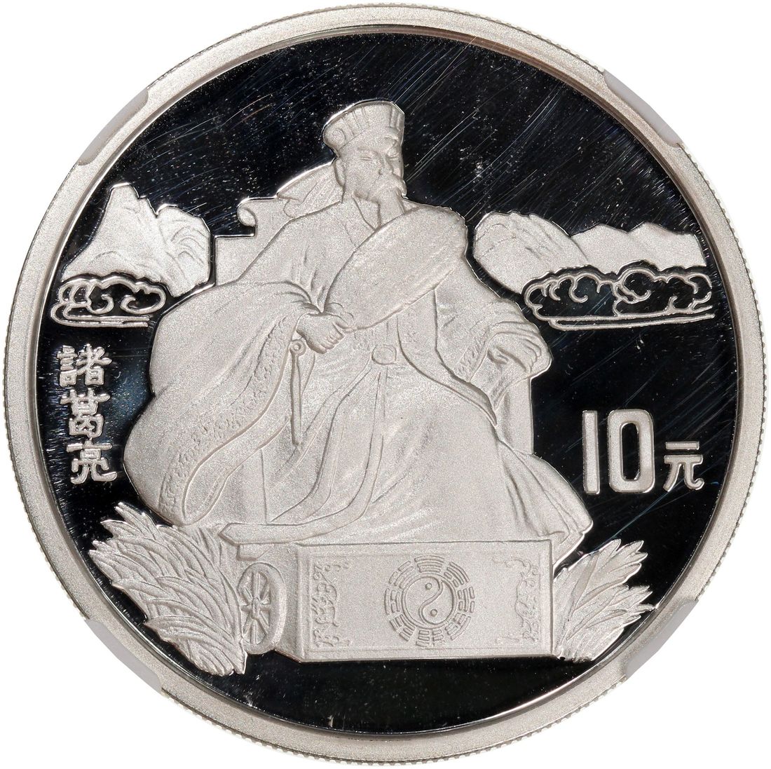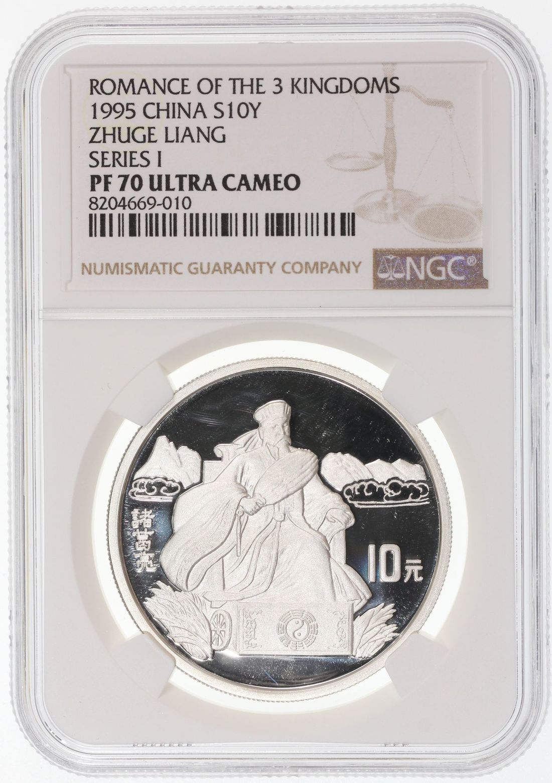 (x) People's Republic of China, [NGC PF 70UC] silver proof 10 yuan, 1995, "Romance of the Three Kingdoms - Zhu Ge Liang", 92.5% silver, weigh 27g, TOP POP. Cert.# 8204669-010