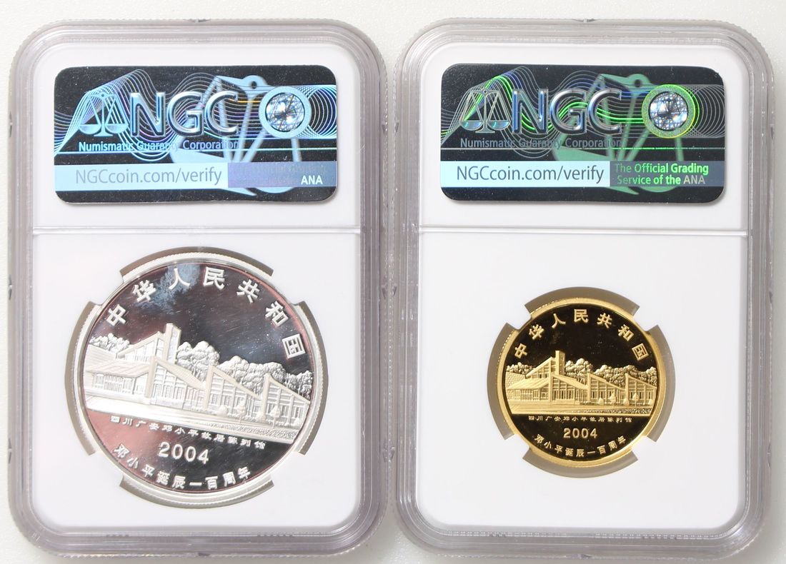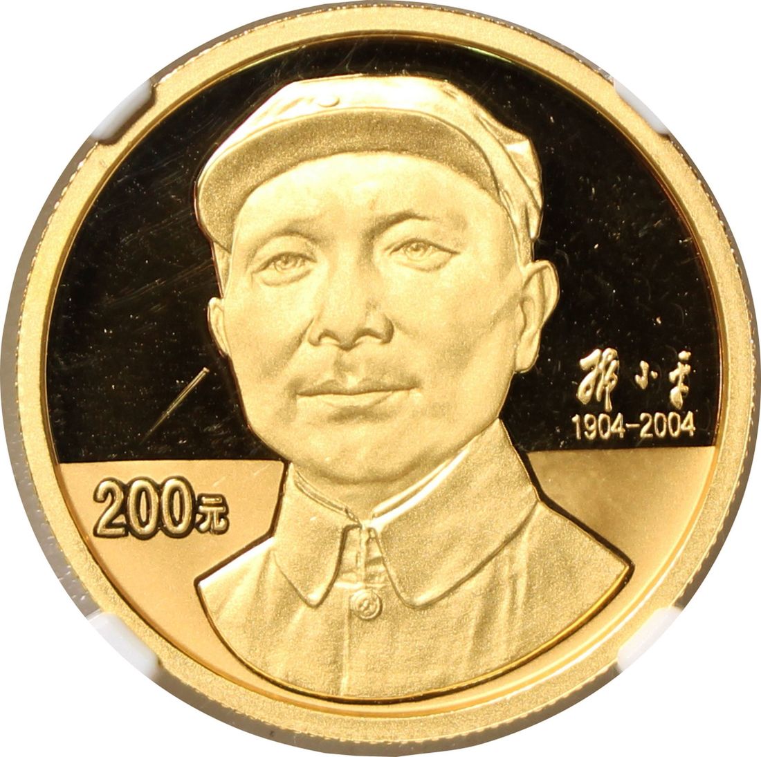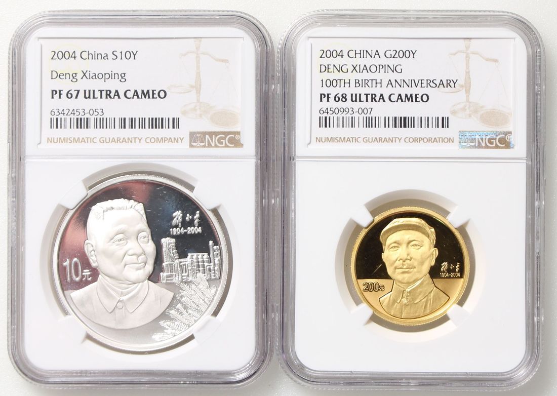 People's Republic of China, a pair of gold proof 200 yuan and silver proof 10 yuan, 2004, "Centenary of the Birth of Deng Xiao Ping", total AGW 0.5oz, ASW 1oz,