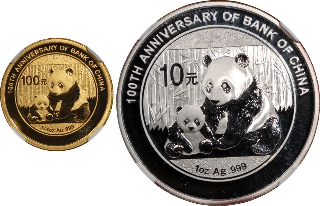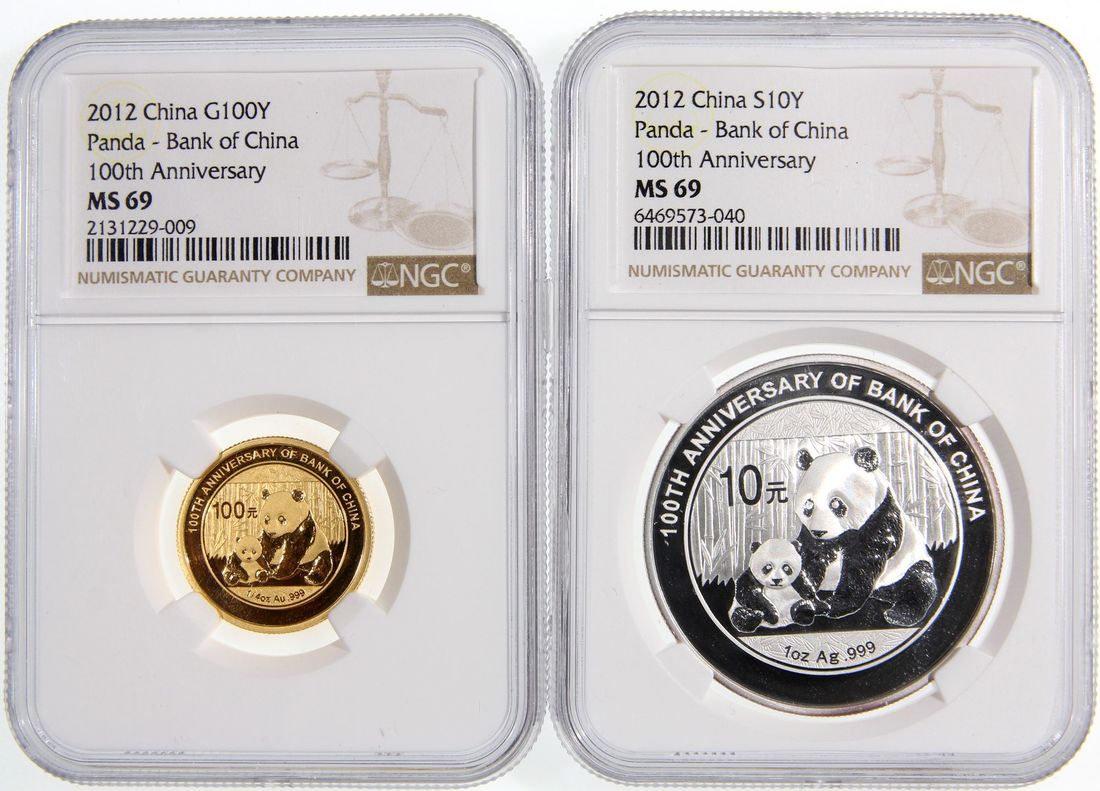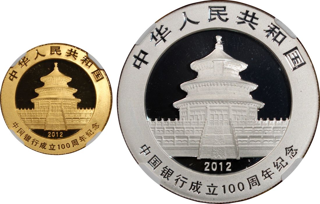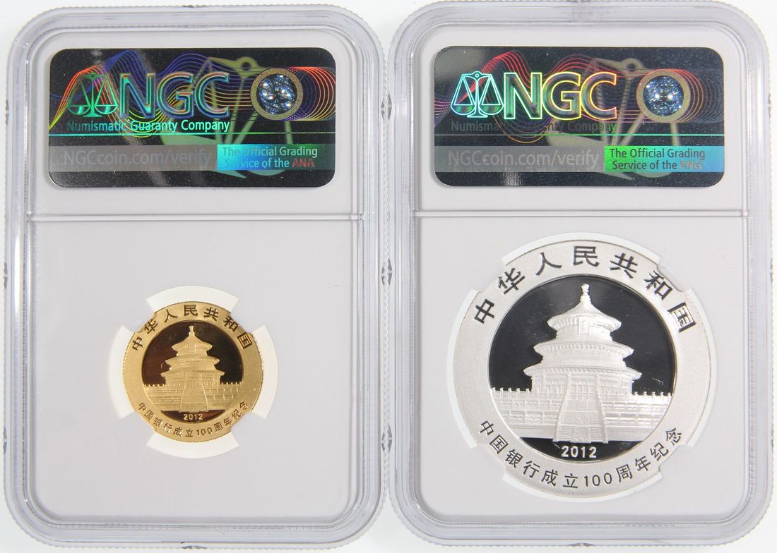 People's Republic of China, [NGC MS69] a pair of gold proof 100 yuan and silver proof 10 yuan, 2011, "100th Anniversary of The Bank of China", 0.25oz and 1oz respectively,