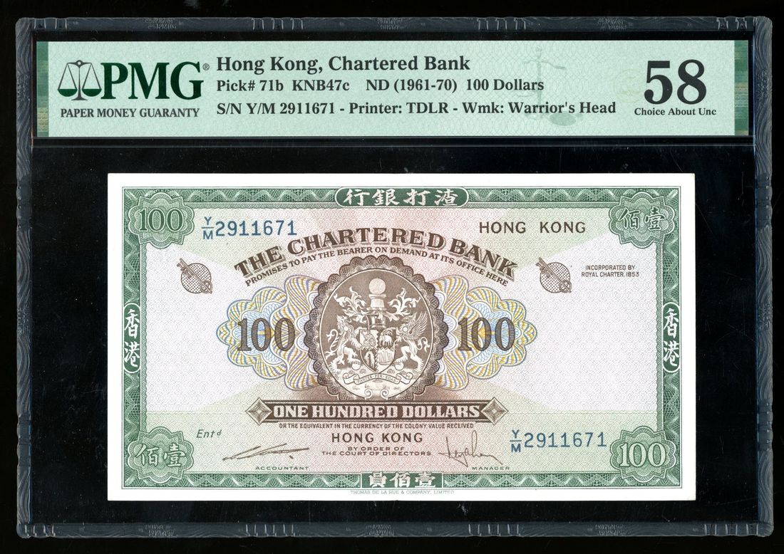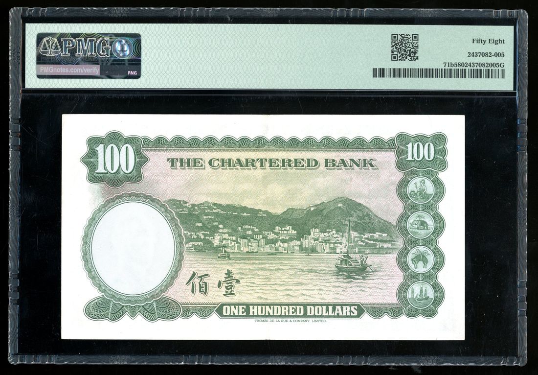 1961-1970年渣打銀行壹佰員,編號Y/M 2911671,PMG 58