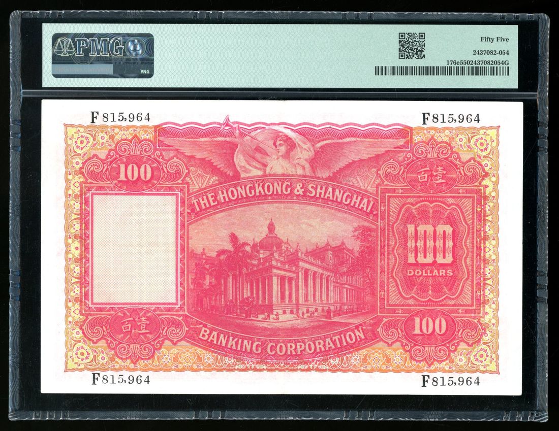 1955年香港上海匯豐銀行壹佰圓,編號F815964,PMG 55
