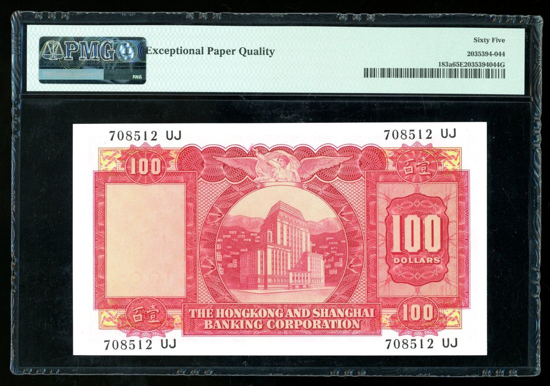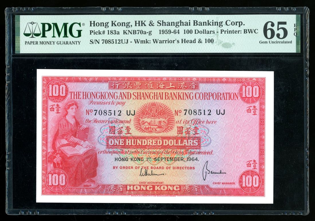 HongKong & Shanghai Banking Corporation, $100, 1.9.1964, serial number 708512UJ, (Pick 183a), PMG 65EPQ